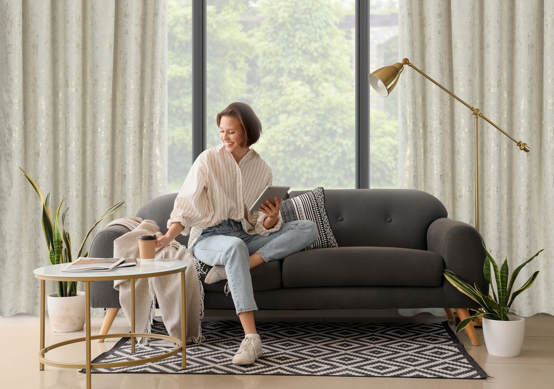 Zasłona z miękkiej welwetowej tkaniny, ozdobiona eleganckim motywem na spokojnym, stonowanym tle, to idealna dekoracja dla nowoczesnych wnętrz w stylu glamour. Aksamitna, przyjemna w dotyku tkanina dodaje wnętrzu luksusowego charakteru, a jej subtelny połysk pięknie komponuje się z naturalnym światłem. Modny wzór wprowadza do pomieszczenia stylowy akcent, tworząc przytulną i modną przestrzeń. Nasze kolekcje są tworzone z pasji do pięknych wnętrz – stwórz z nami idealną oazę spokoju w swoim domu.