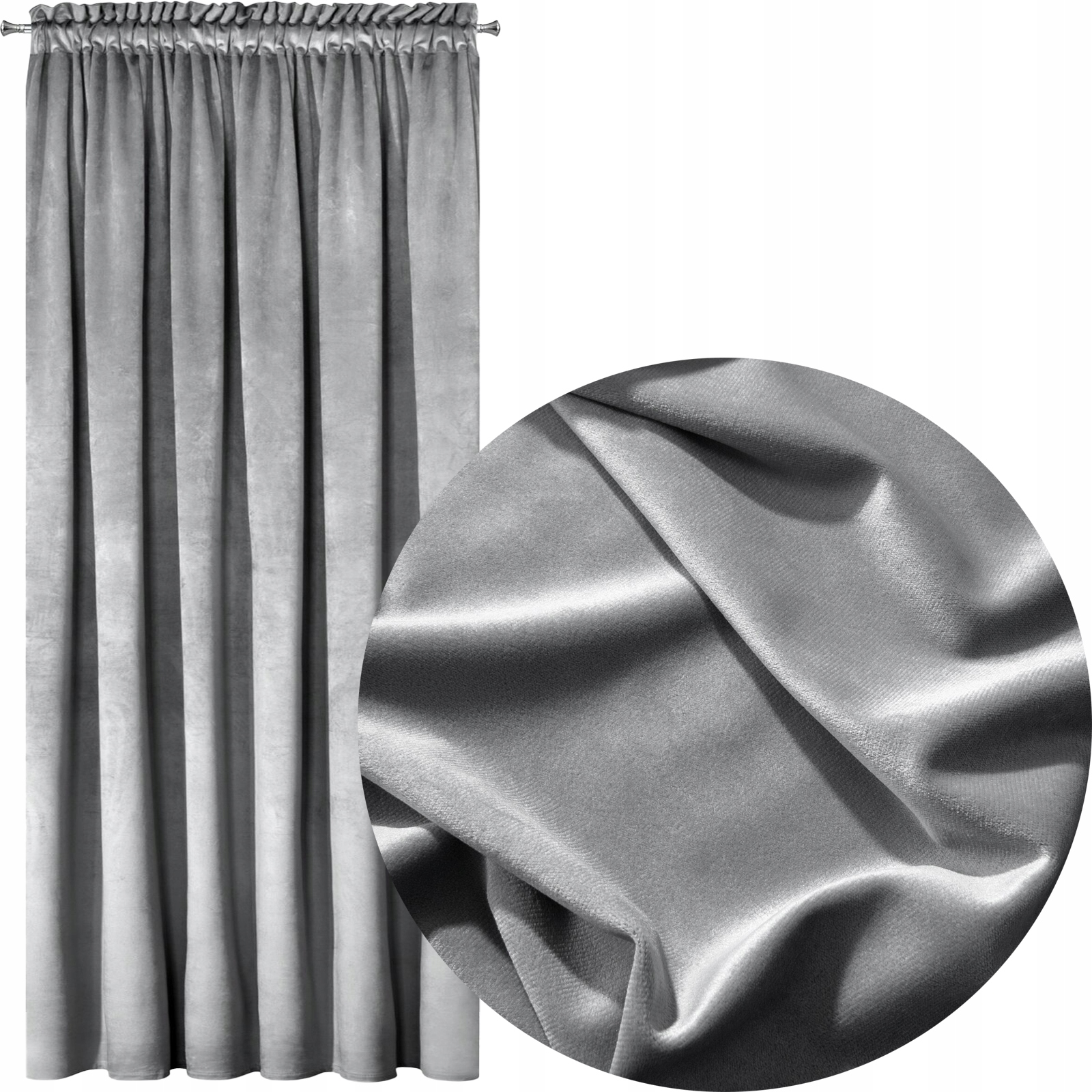Zasłona welwet srebrna 140X270 taśma