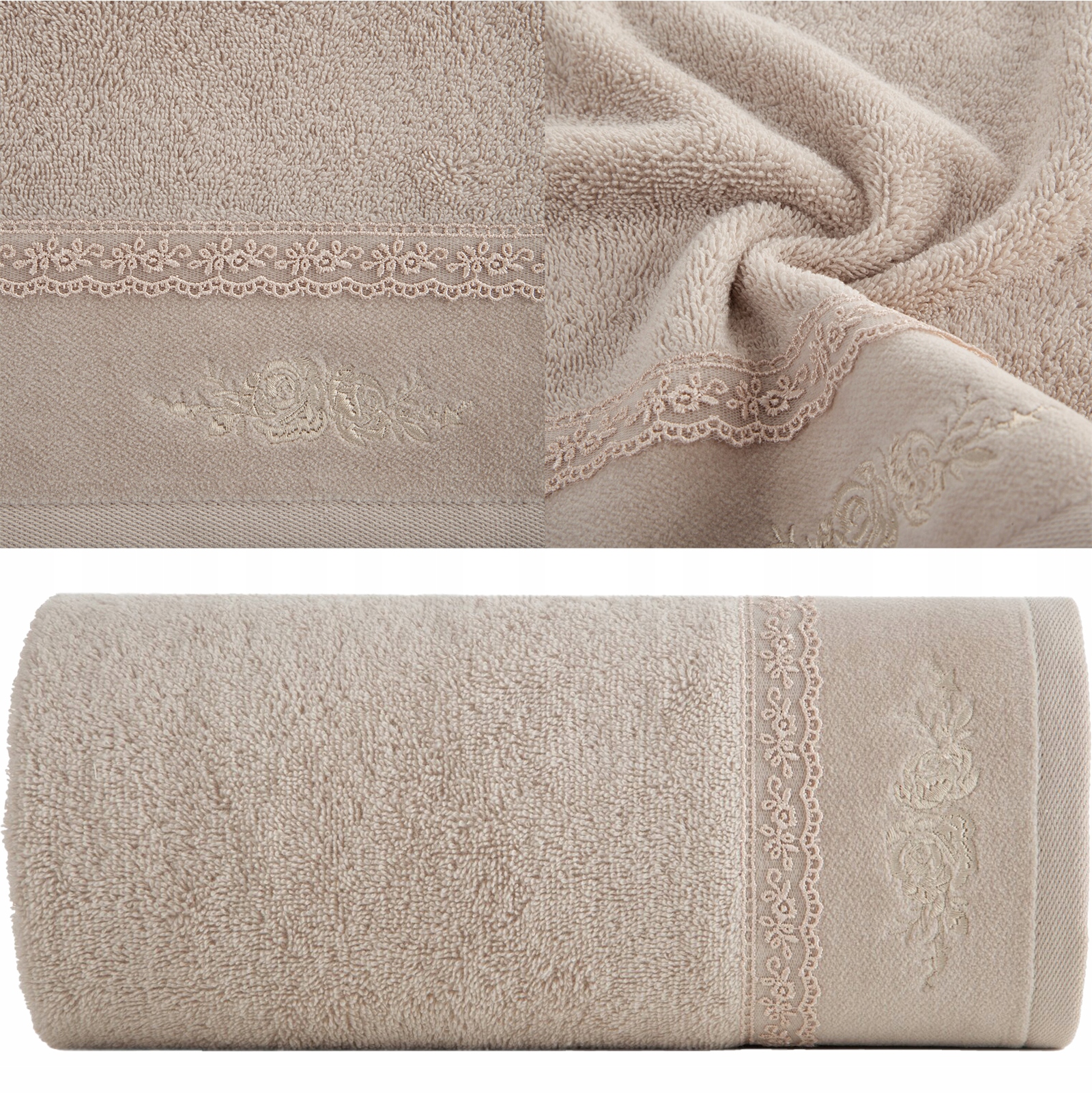 Piękny mięciutki ręcznik kąpielowy bawełna 50×90 beżowy prezent