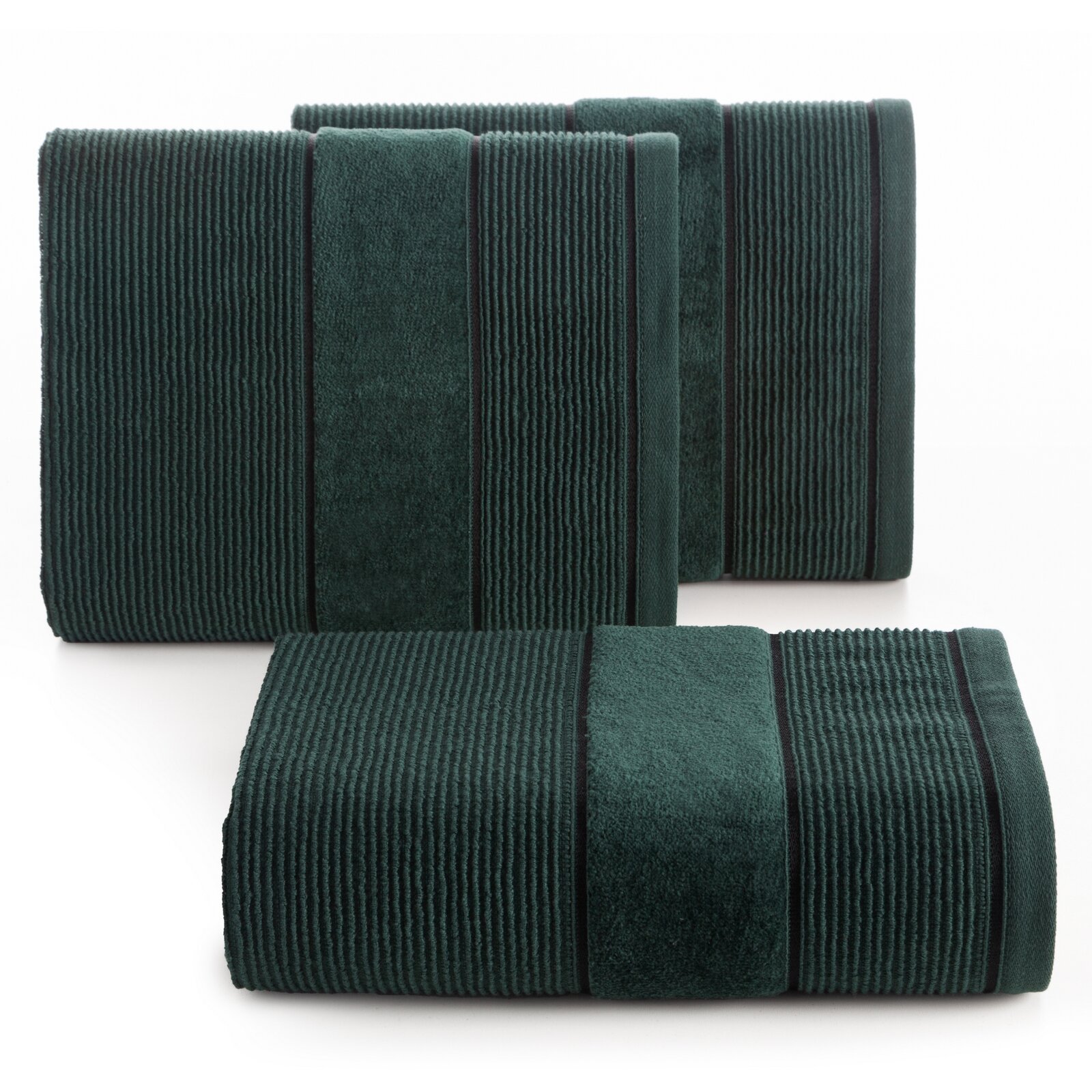 Elegancki ręcznik bawełniany, który łączy w sobie klasyczną funkcjonalność i wyrafinowany design. Wykonany z wysokiej jakości, miękkiej bawełny, zapewnia wyjątkowy komfort i doskonałą chłonność. Powierzchnia ręcznika jest zdobiona subtelnymi, wytłaczanymi prążkami, które nadają mu elegancki i nowoczesny wygląd, a jednocześnie dodają delikatnej tekstury. Dół ręcznika wykończony jest welurową bordiurą, która stanowi luksusowy akcent. Welurowa krawędź jest gładka i lekko połyskująca, dodając całości wyrafinowanego charakteru oraz odrobinę elegancji. Taki ręcznik to nie tylko praktyczny element wyposażenia łazienki, ale również stylowa ozdoba, która świetnie sprawdzi się zarówno w nowoczesnych, jak i klasycznych aranżacjach. Idealny do codziennego użytku, jak i jako elegancki dodatek na specjalne okazje.