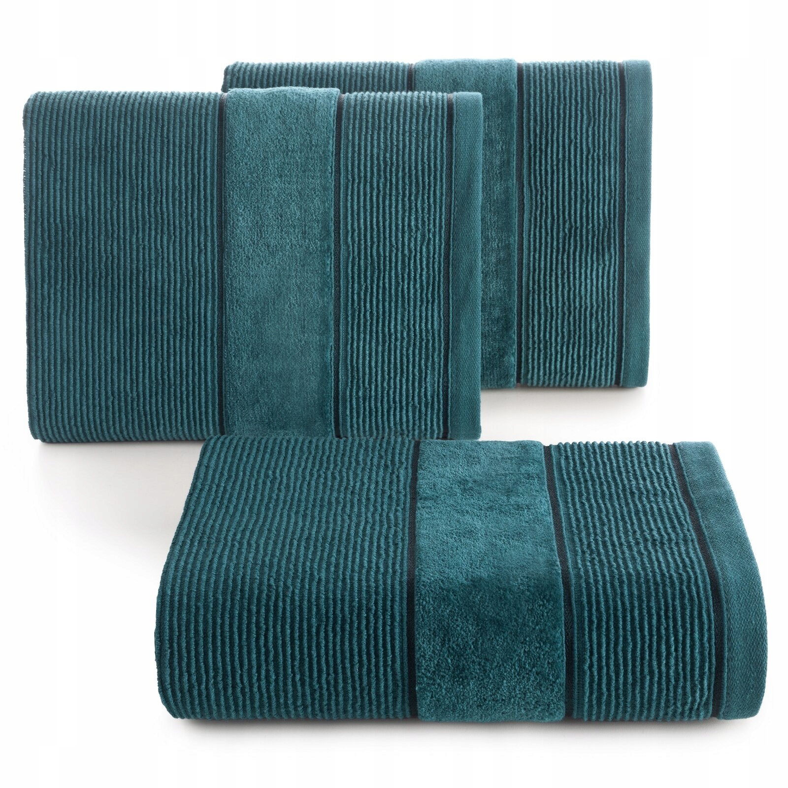 Elegancki ręcznik bawełniany, który łączy w sobie klasyczną funkcjonalność i wyrafinowany design. Wykonany z wysokiej jakości, miękkiej bawełny, zapewnia wyjątkowy komfort i doskonałą chłonność. Powierzchnia ręcznika jest zdobiona subtelnymi, wytłaczanymi prążkami, które nadają mu elegancki i nowoczesny wygląd, a jednocześnie dodają delikatnej tekstury. Dół ręcznika wykończony jest welurową bordiurą, która stanowi luksusowy akcent. Welurowa krawędź jest gładka i lekko połyskująca, dodając całości wyrafinowanego charakteru oraz odrobinę elegancji. Taki ręcznik to nie tylko praktyczny element wyposażenia łazienki, ale również stylowa ozdoba, która świetnie sprawdzi się zarówno w nowoczesnych, jak i klasycznych aranżacjach. Idealny do codziennego użytku, jak i jako elegancki dodatek na specjalne okazje.