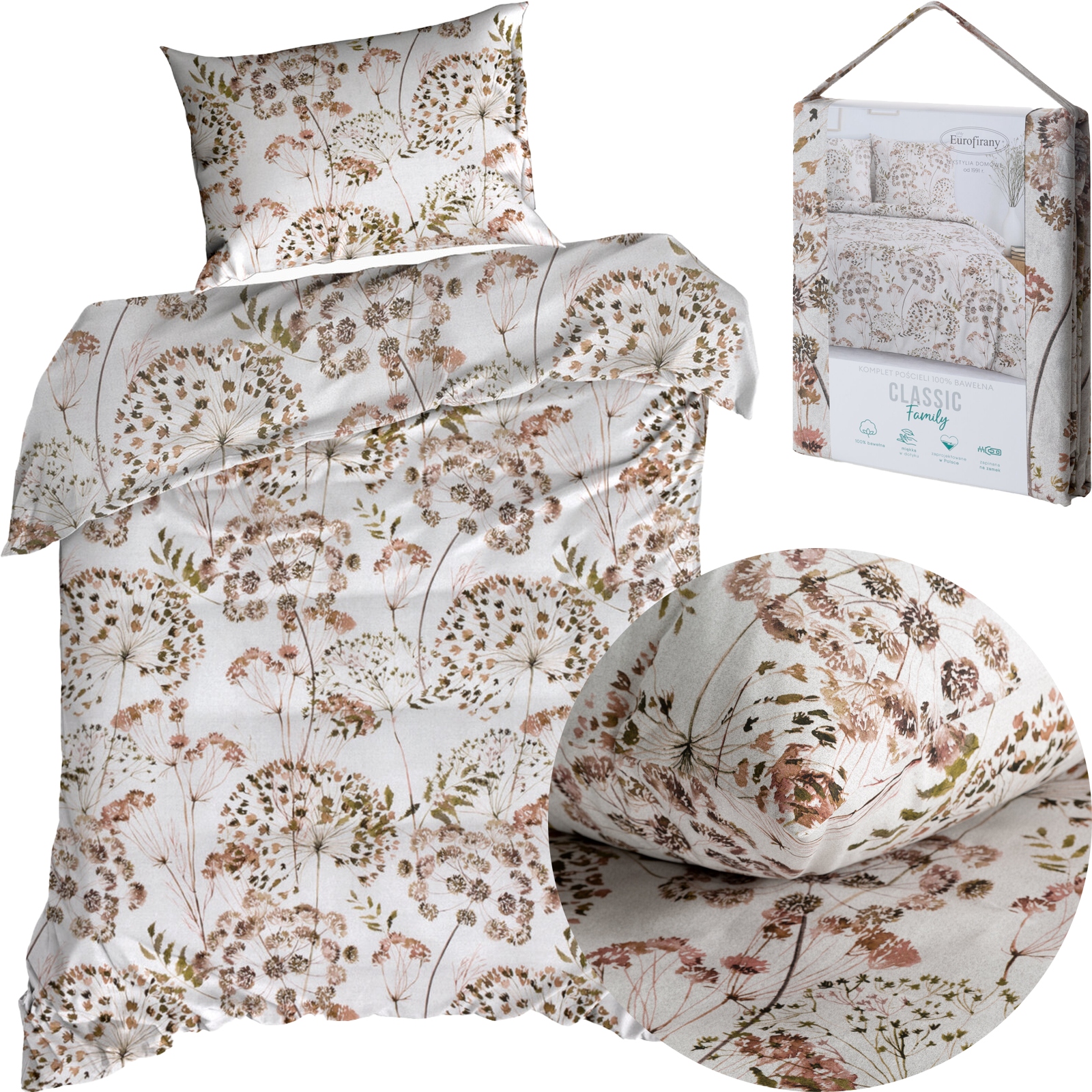 Pościel bawełniana 140×200 cm z Kolorowym Motywem Kwiatowym to elegancki komplet pościeli, który zachwyca subtelnym nadrukiem kwiatów, nadając wnętrzu świeżości i przytulności. Wykonana z naturalnej bawełny o gramaturze 105 g/m2, pościel zapewnia komfortowy i zdrowy sen, a jej delikatna tkanina jest miła w dotyku i przyjazna dla skóry.