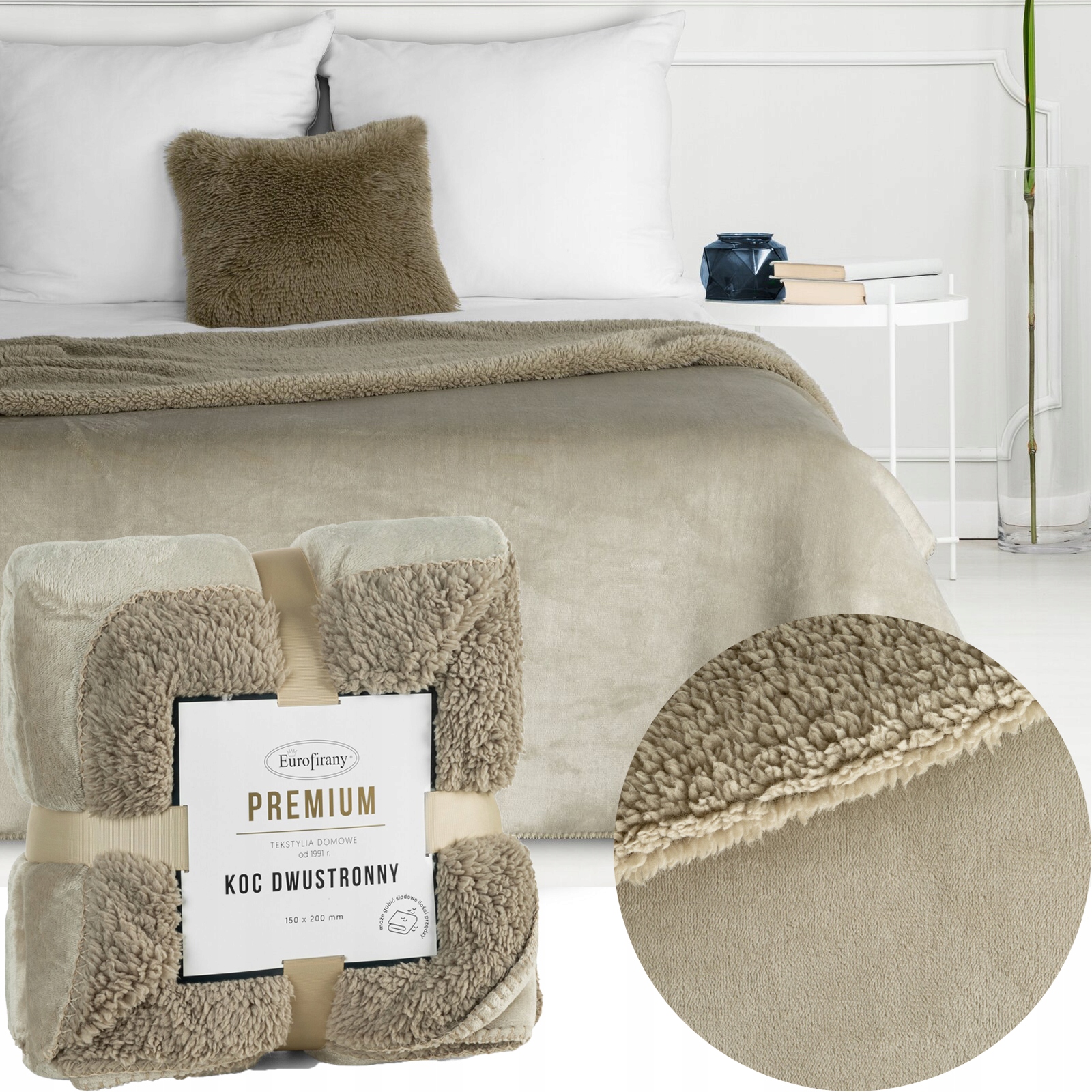 Prezent Koc narzuta dwustronny PREMIUM 200 x 220cm beż