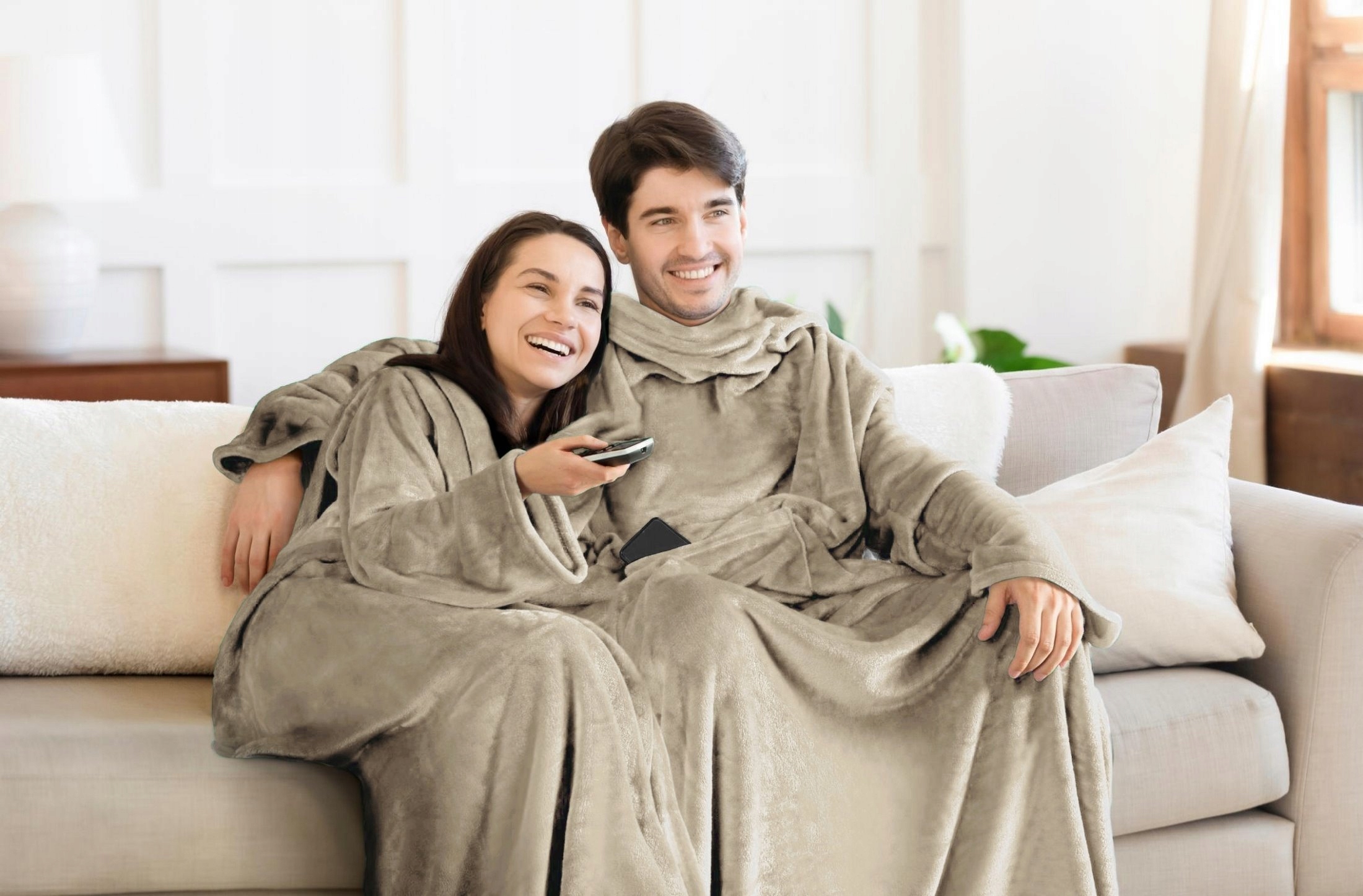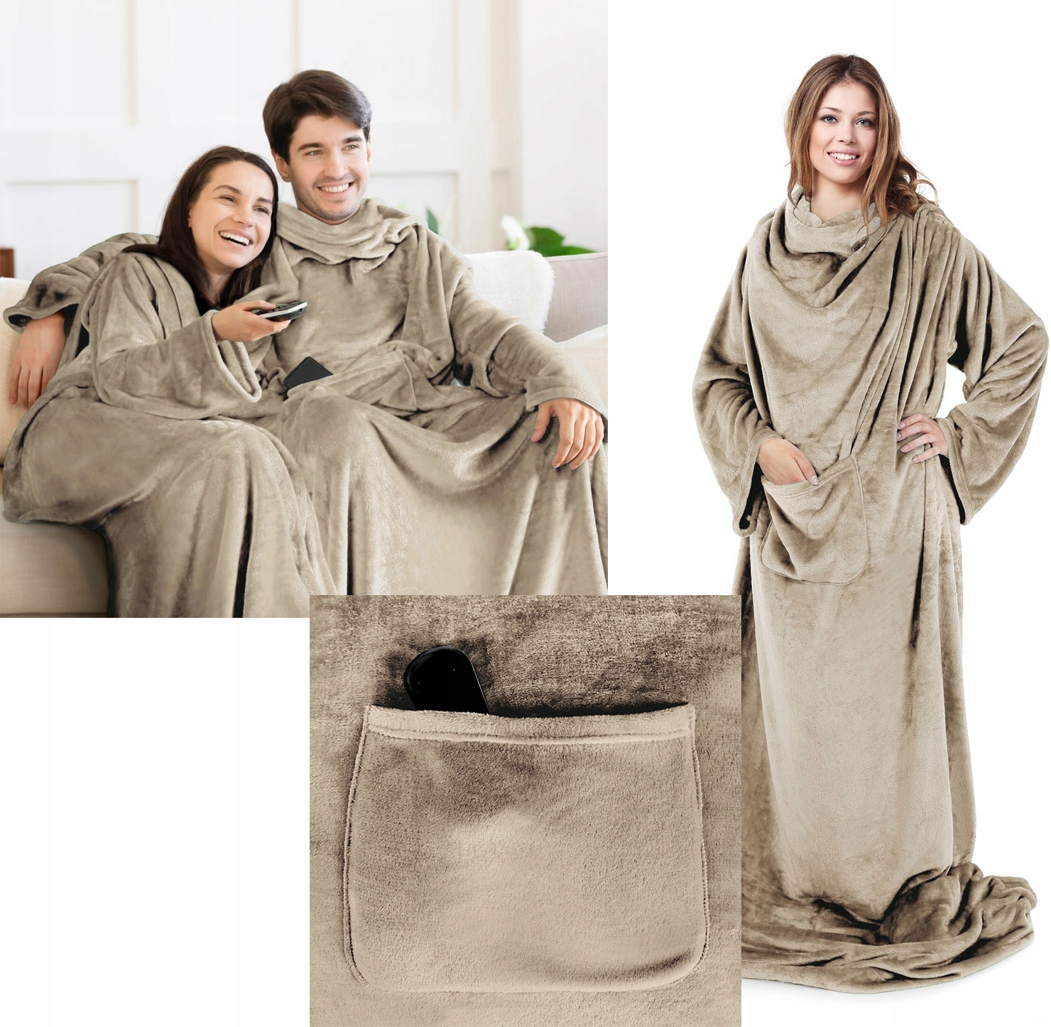 PREZENT Koc Z Rękawami mięciutki cieplutki szlafrok 150×180 beż
