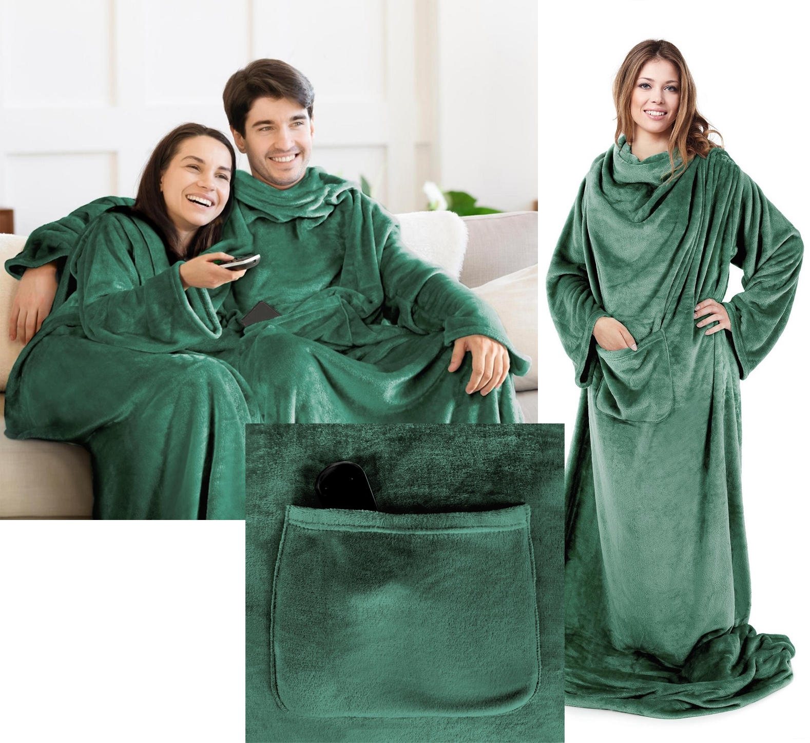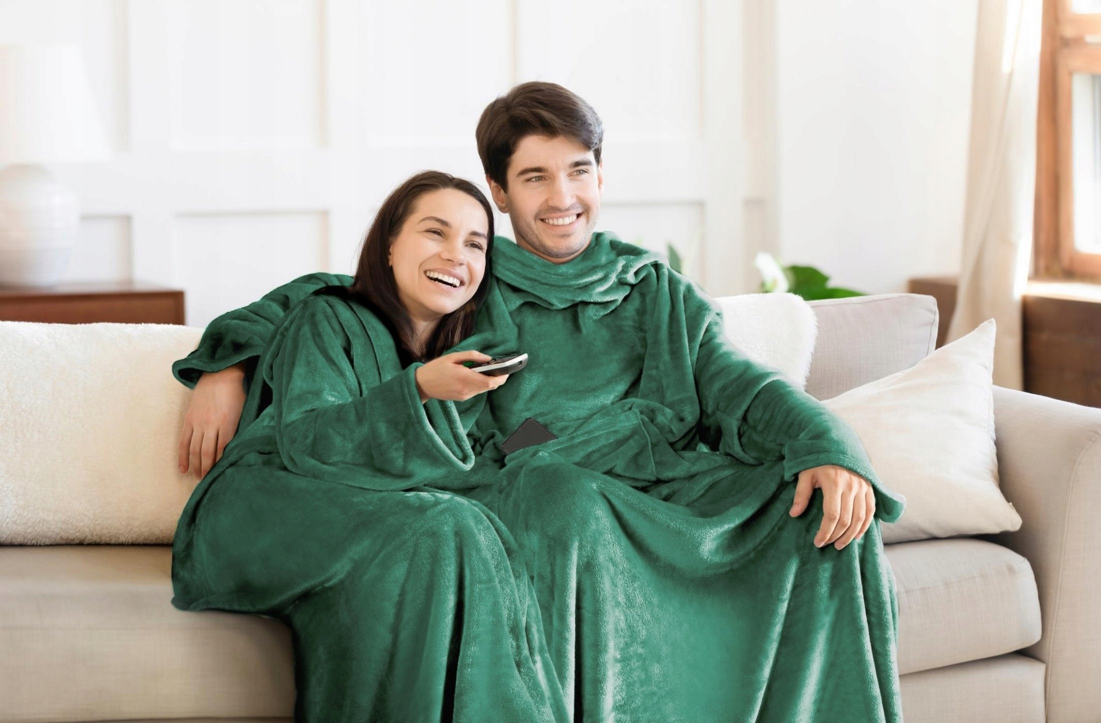 PREZENT Koc Z Rękawami mięciutki cieplutki szlafrok 150×180 c.ziel