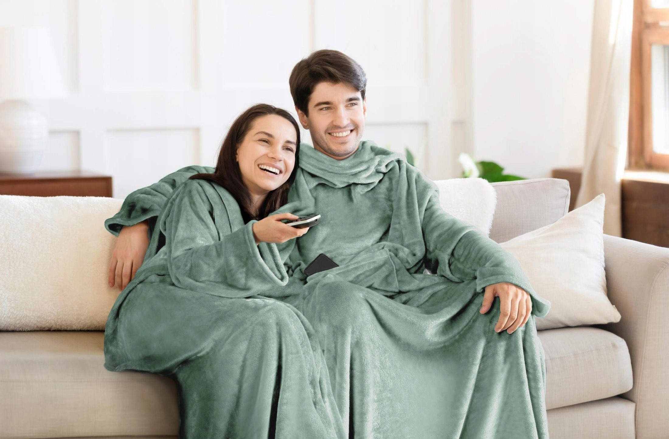 PREZENT Koc Z Rękawami mięciutki cieplutki szlafrok 150×180 miętowy