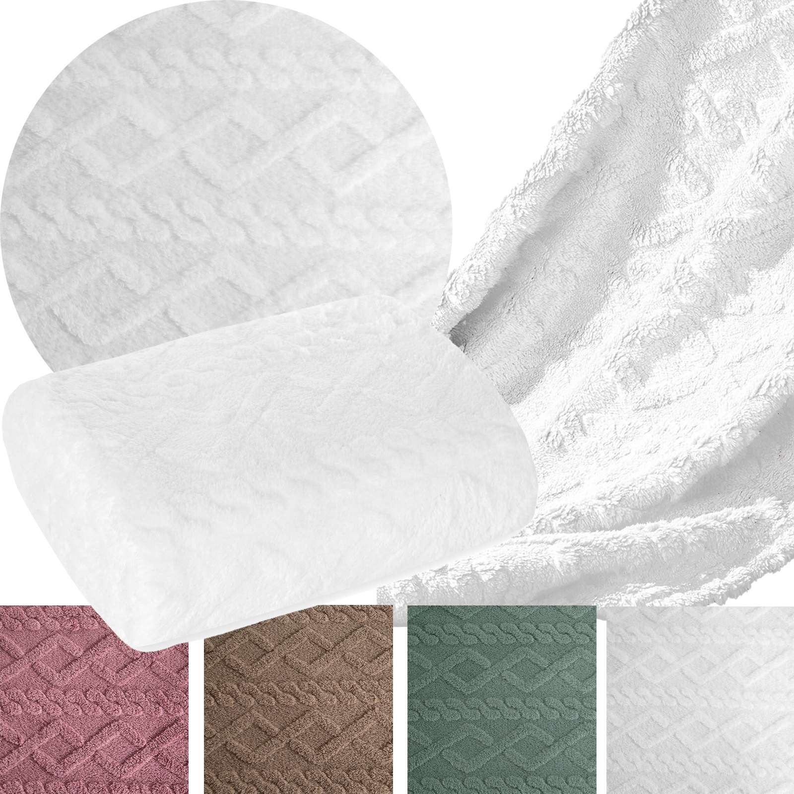 Koc narzuta mięciutki gruby 150 cm x 200 cm biały
