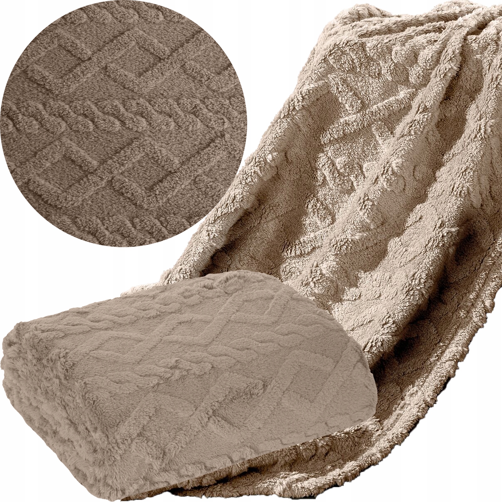 Koc narzuta 170 cm x 210 cm bardzo miękki w dotyku z efektem 3d beż