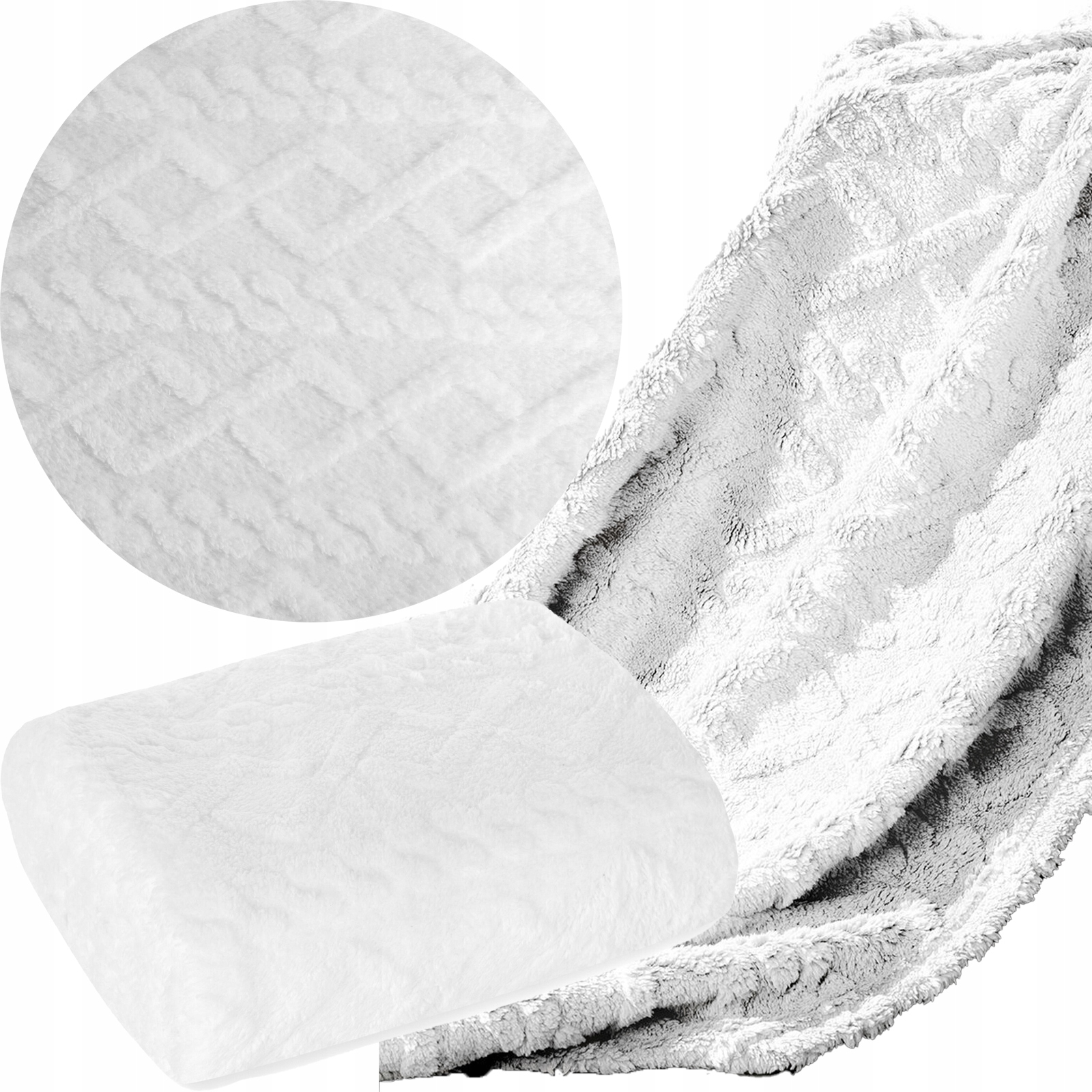 Biały, miękki i przyjemny w dotyku koc o splocie w formie warkocza, rozmiar 200 cm x 220 cm