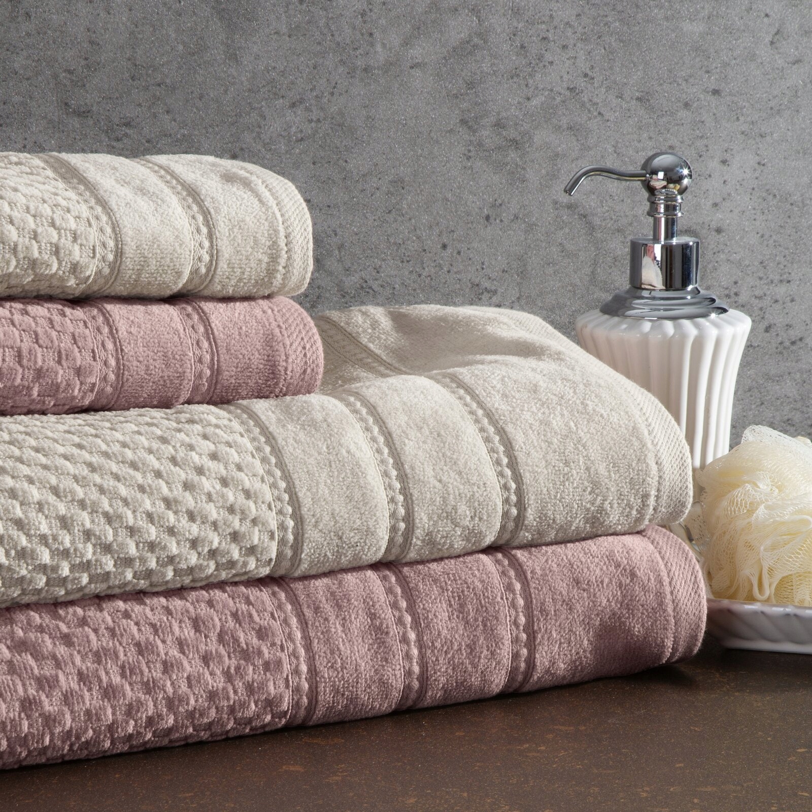 Ręcznik kąpielowy bawełna miękki chłonny pudrowy zestaw 4 szt prezent