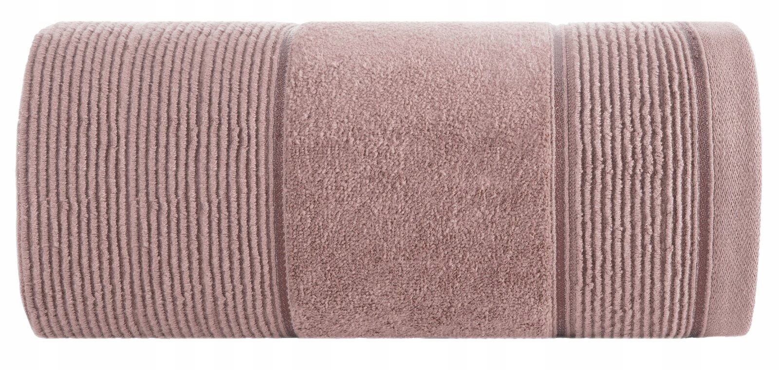 Elegancki ręcznik bawełniany, który łączy w sobie klasyczną funkcjonalność i wyrafinowany design. Wykonany z wysokiej jakości, miękkiej bawełny, zapewnia wyjątkowy komfort i doskonałą chłonność. Powierzchnia ręcznika jest zdobiona subtelnymi, wytłaczanymi prążkami, które nadają mu elegancki i nowoczesny wygląd, a jednocześnie dodają delikatnej tekstury. Dół ręcznika wykończony jest welurową bordiurą, która stanowi luksusowy akcent. Welurowa krawędź jest gładka i lekko połyskująca, dodając całości wyrafinowanego charakteru oraz odrobinę elegancji. Taki ręcznik to nie tylko praktyczny element wyposażenia łazienki, ale również stylowa ozdoba, która świetnie sprawdzi się zarówno w nowoczesnych, jak i klasycznych aranżacjach. Idealny do codziennego użytku, jak i jako elegancki dodatek na specjalne okazje.