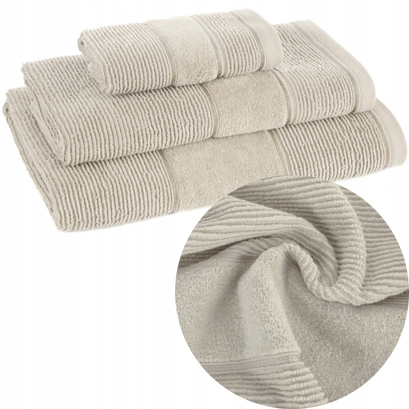Ręcznik kąpielowy bawełna miękki chłonny beż zestaw 3 szt prezent