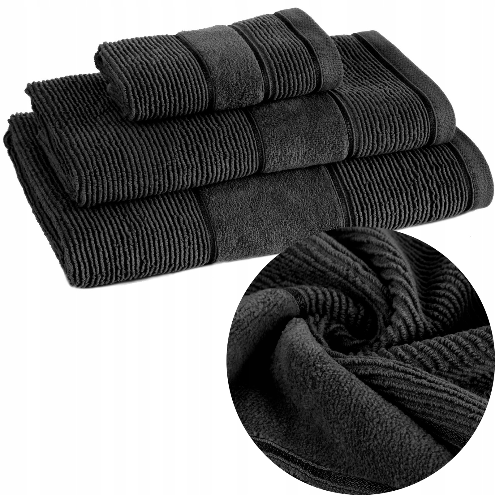 Ręcznik kąpielowy bawełna miękki chłonny czarny zestaw 3 szt prezent