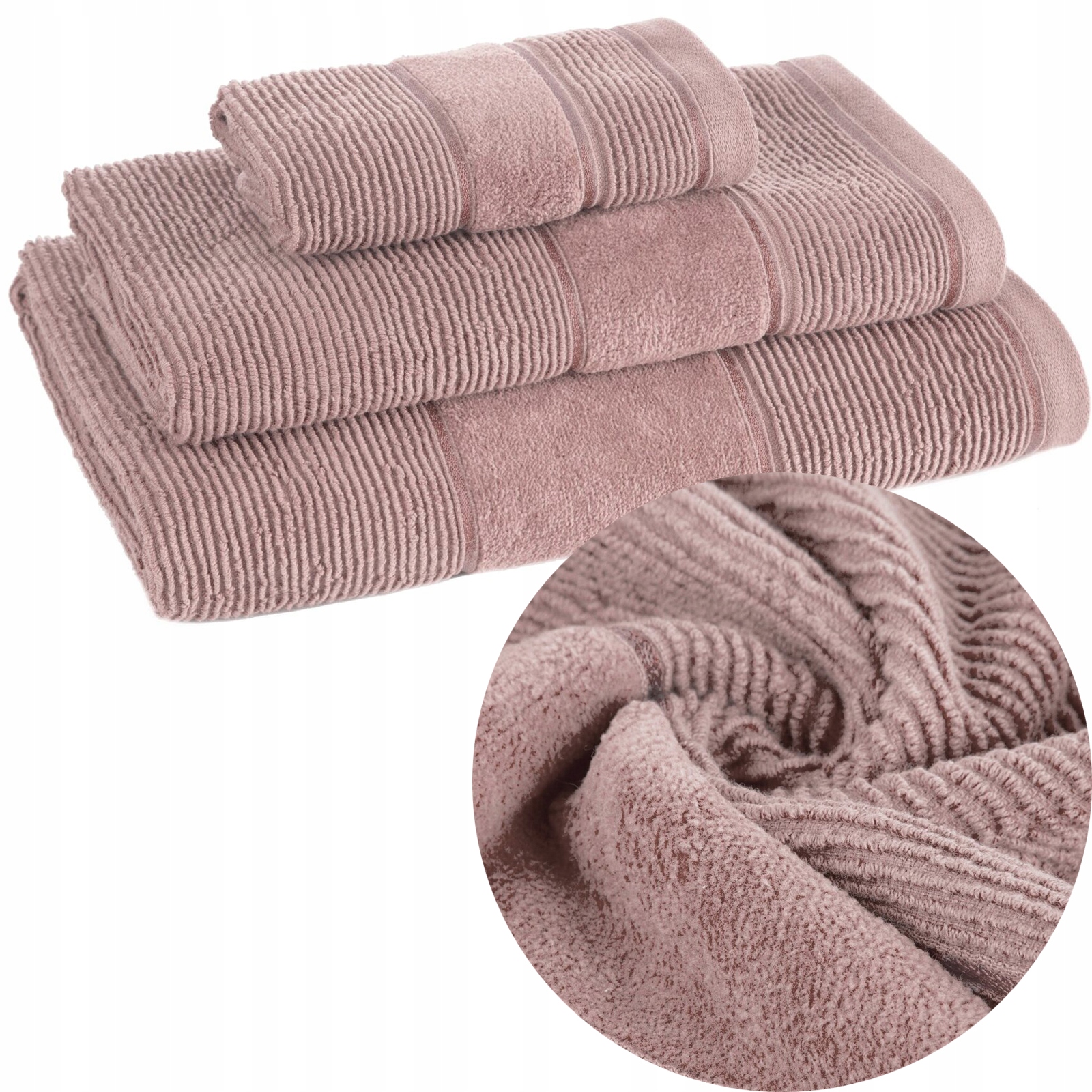 Ręcznik kąpielowy bawełna miękki chłonny pudrowy zestaw 3 szt prezent