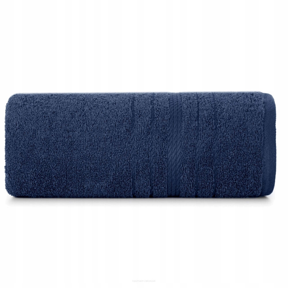 Klasyczny ręcznik kąpielowy z chłonnej tkaniny bawełnianej o splocie frotte. Ręcznik z ozdobną welurową bordiurą w pasy.