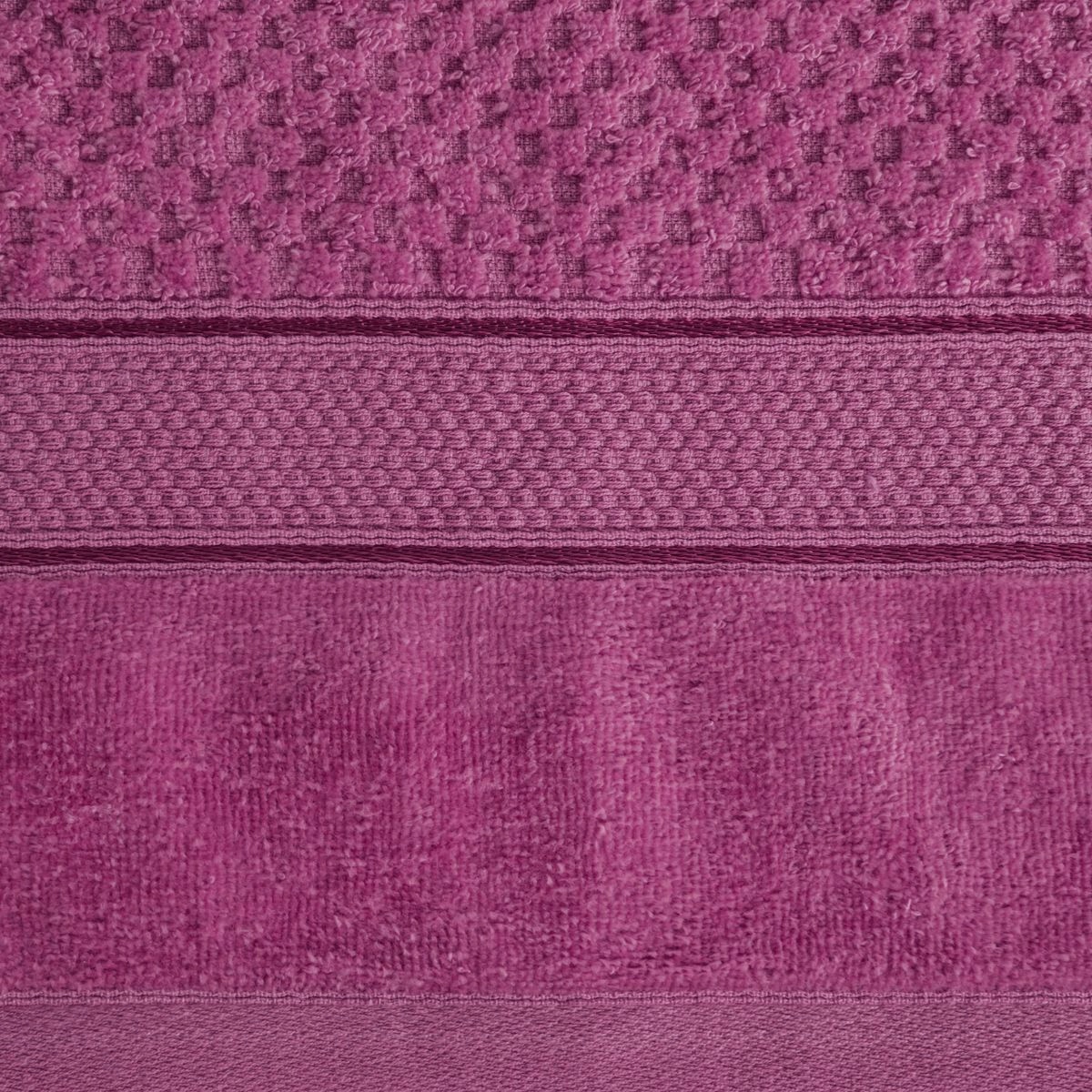 Ręcznik welurowy z prostą bordiurą i frotte ze strukturą. Wysoka gramatura frotte gwarantuje dużą chłonność. Ręcznik odporny na pranie