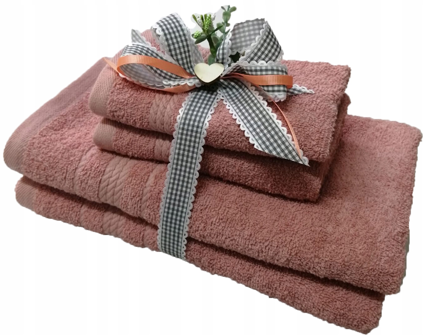 Ręcznik kąpielowy bawełna miękki chłonny pudrowy zestaw 4 szt prezent