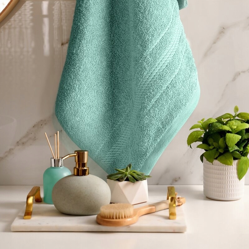 ^^ Klasyczny design – wpasuje się w każdą aranżację łazienki ^^ Subtelne zdobienie – o prostej formie, pod kolor ręcznika ^^ Chłonny – pozwoli na dokładne osuszenie ciała po kąpieli