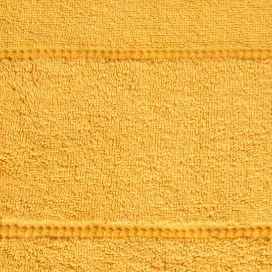 Klasyczny ręcznik kąpielowy z chłonnej tkaniny bawełnianej o splocie frotte. Ręcznik z ozdobną welurową bordiurą w pasy.