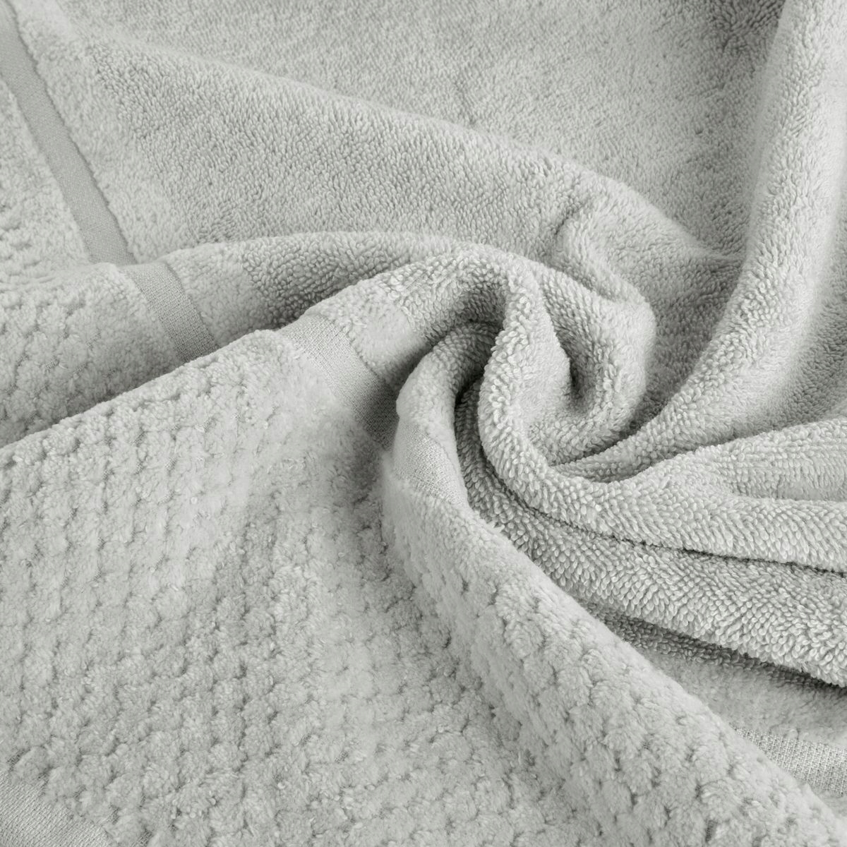 Ręcznik welurowy z prostą bordiurą i frotte ze strukturą. Wysoka gramatura frotte gwarantuje dużą chłonność. Ręcznik odporny na pranie