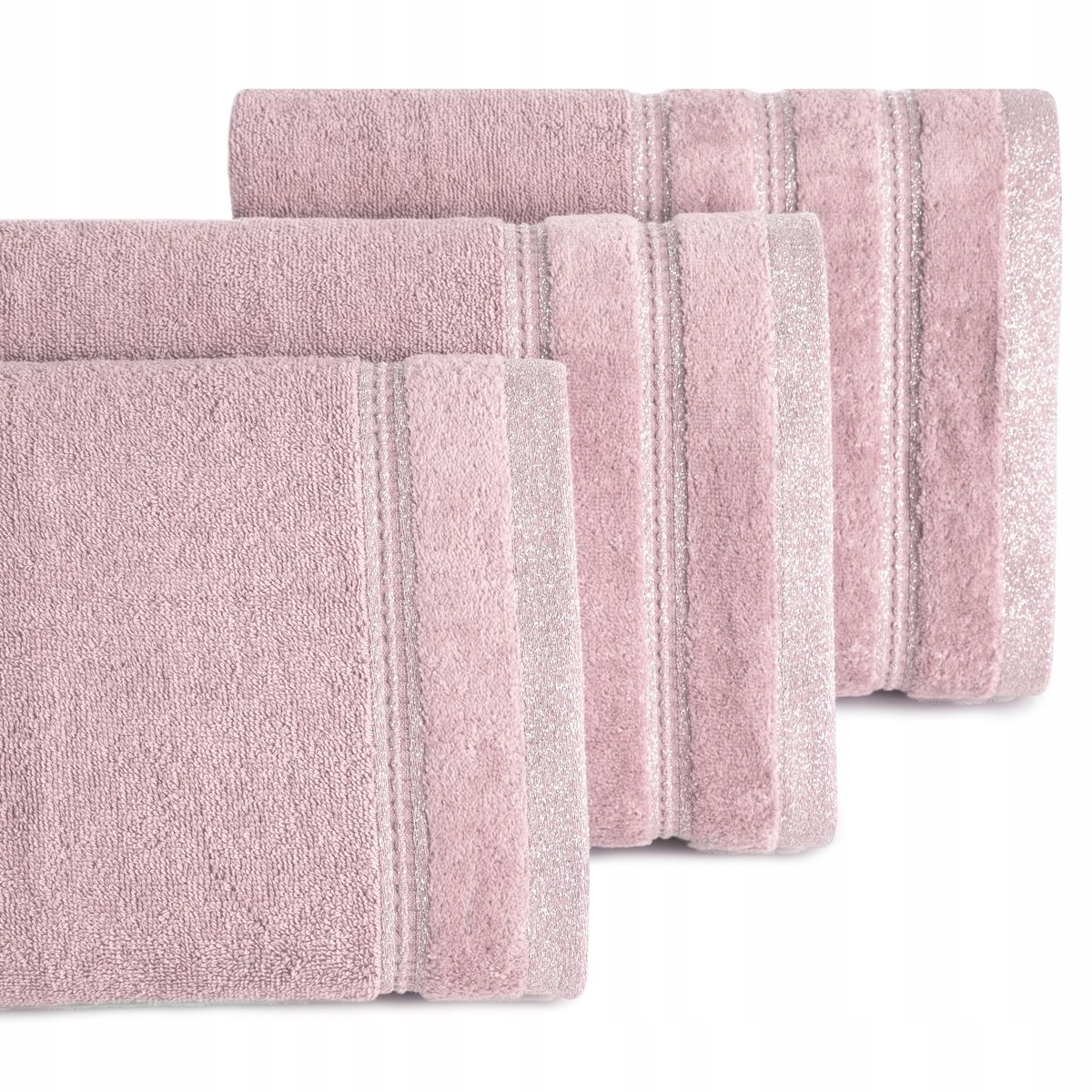 Klasyczny ręcznik kąpielowy z chłonnej tkaniny bawełnianej o splocie frotte. Minimalistyczna bordiura z weluru z dodatkiem lśniącej, metalicznej nici.