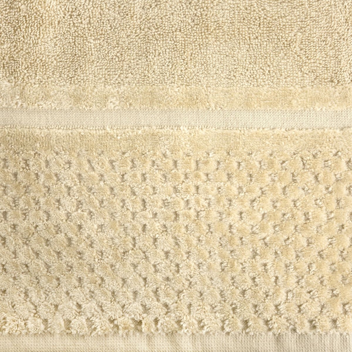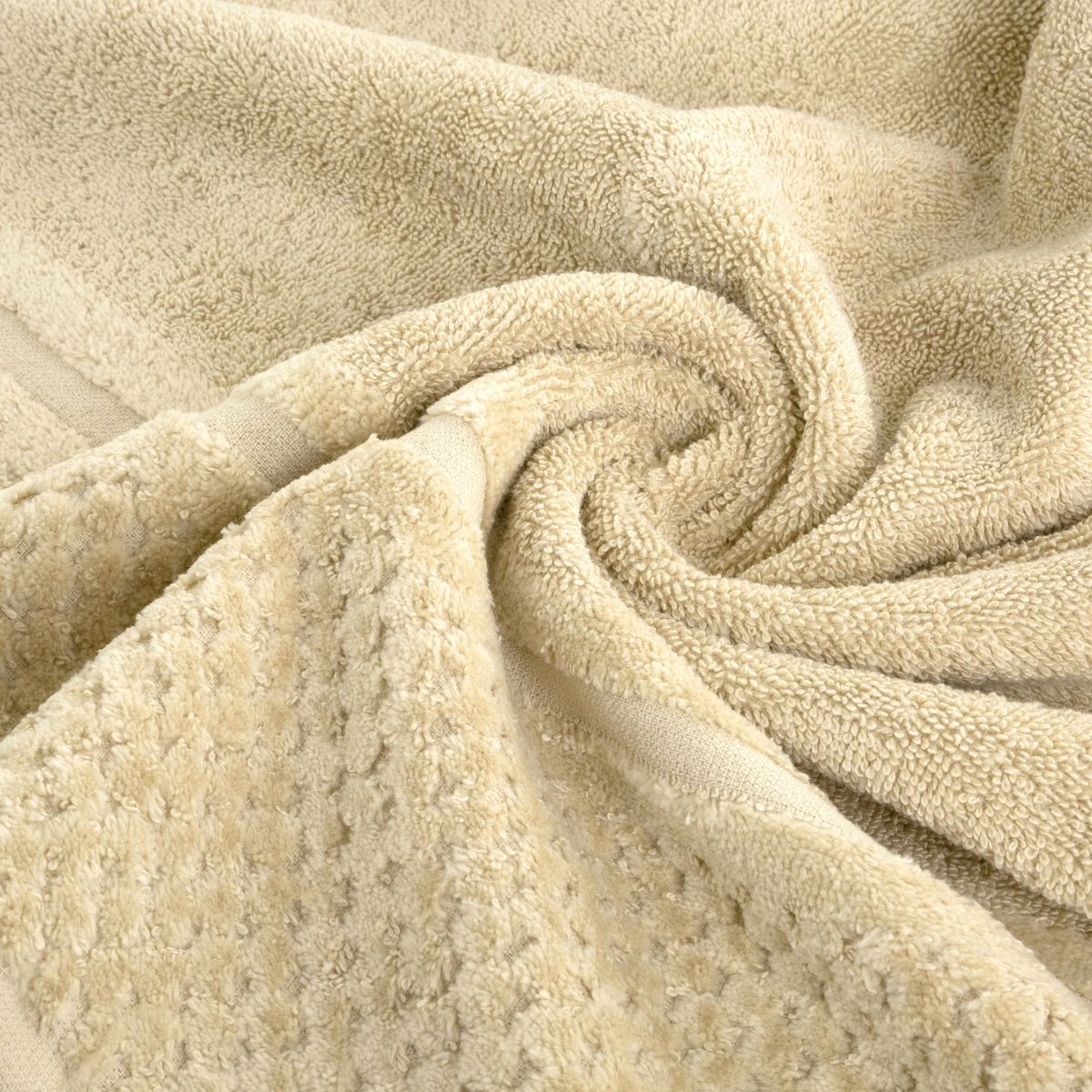 Ręcznik welurowy z prostą bordiurą i frotte ze strukturą. Wysoka gramatura frotte gwarantuje dużą chłonność. Ręcznik odporny na pranie