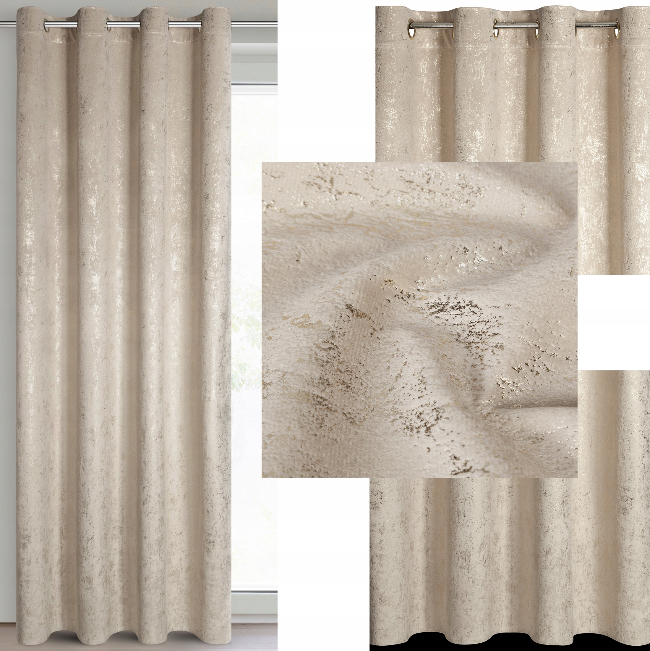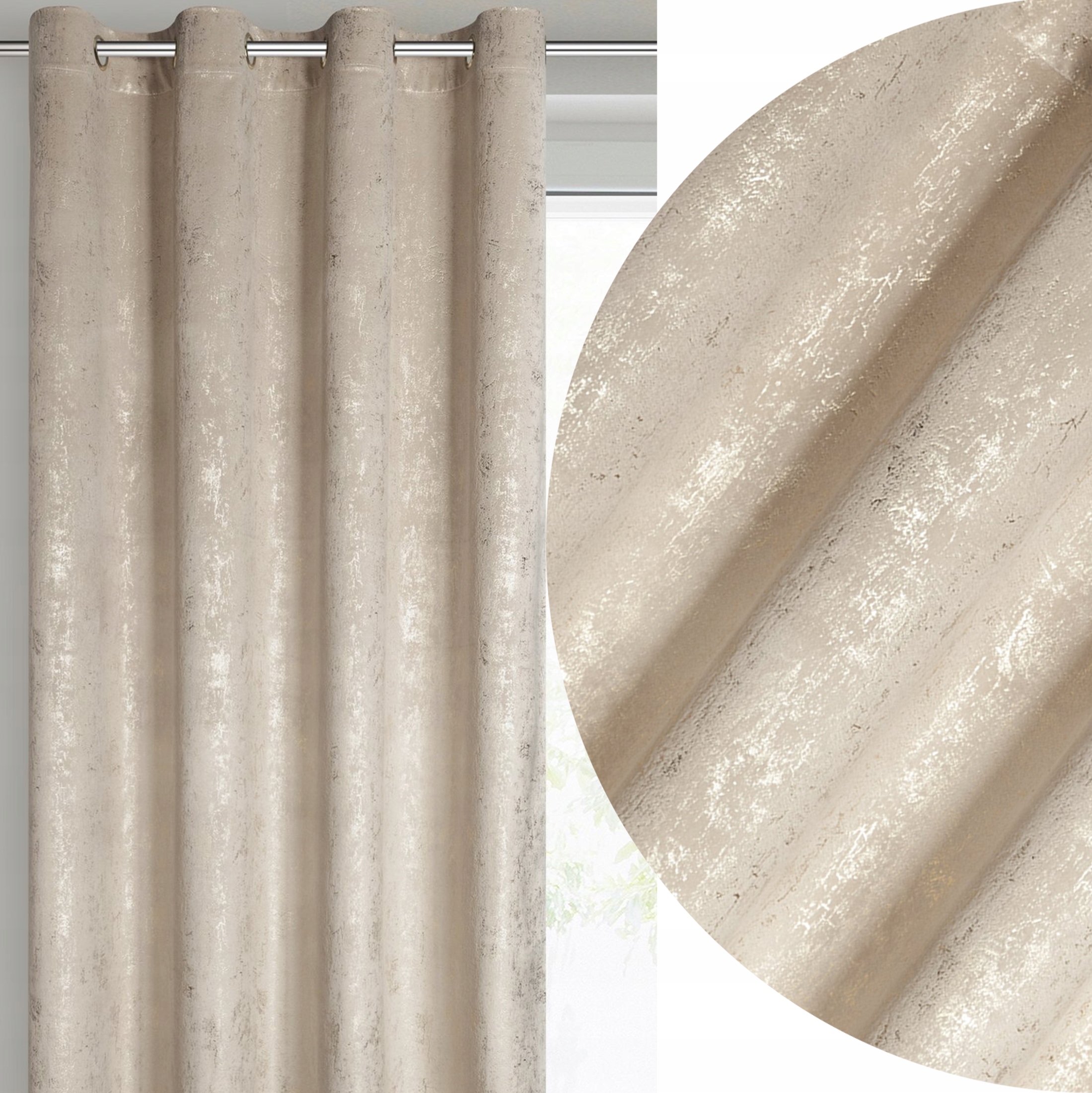 Zasłona 140X250 beżowa welwetowa z nadrukiem przelotka