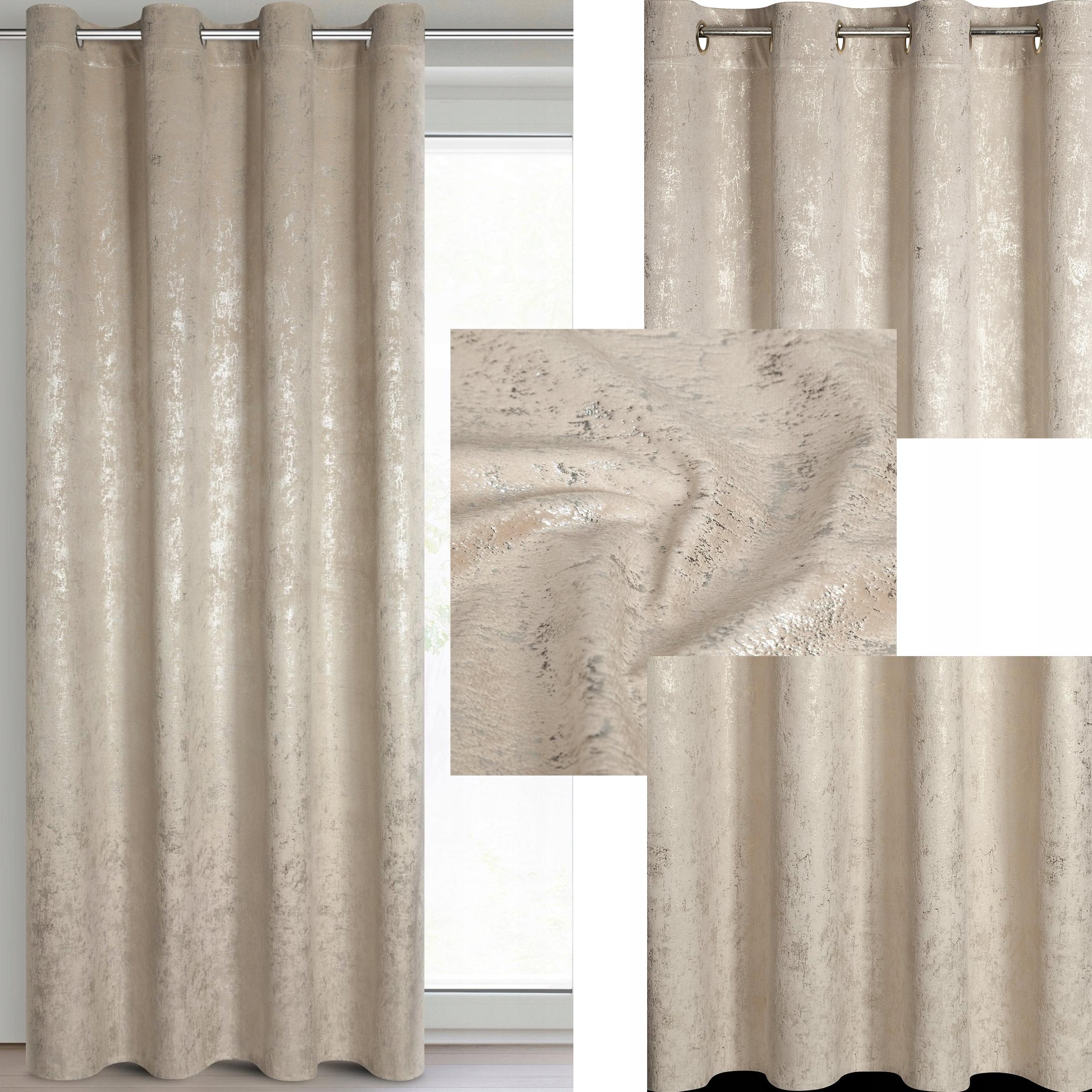 Zasłona 140X250 beżowa welwetowa z nadrukiem przelotka