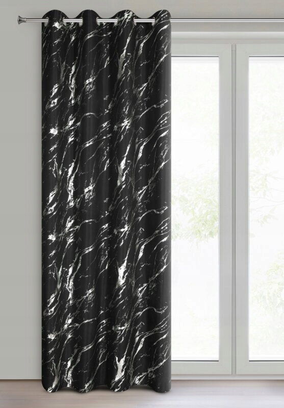 Zasłona 140X250 czarna lekka z srebrnym nadrukiem przelotka