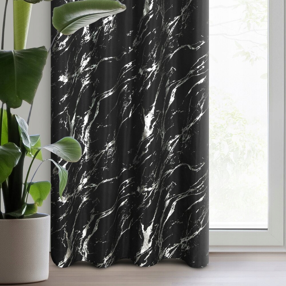 Polecamy zasłonę , którą zdobi nadruk marmurku, naniesiony na kontrastujące tło. Zasłona z lekkiej i delikatnej mikrofibry to dekoracja dedykowana szczególnie nowoczesnym wnętrzom. Zasłonę łatwo zawiesisz na karniszu z drążkiem – służą do tego praktyczne przelotki, dzięki którym zmiana zasłon jest szybka i łatwa, a tkanina układa się po zawieszeniu w miękkie i regularne fale. Delikatna i lekka tkanina subtelnie osłania okno nie powodując zaciemnienia wnętrza, ale tworząc w nim przyjemny klimat.