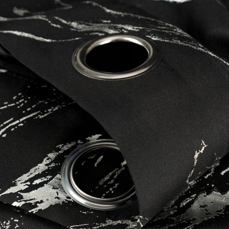 Zasłona 140X250 czarna lekka z srebrnym nadrukiem przelotka
