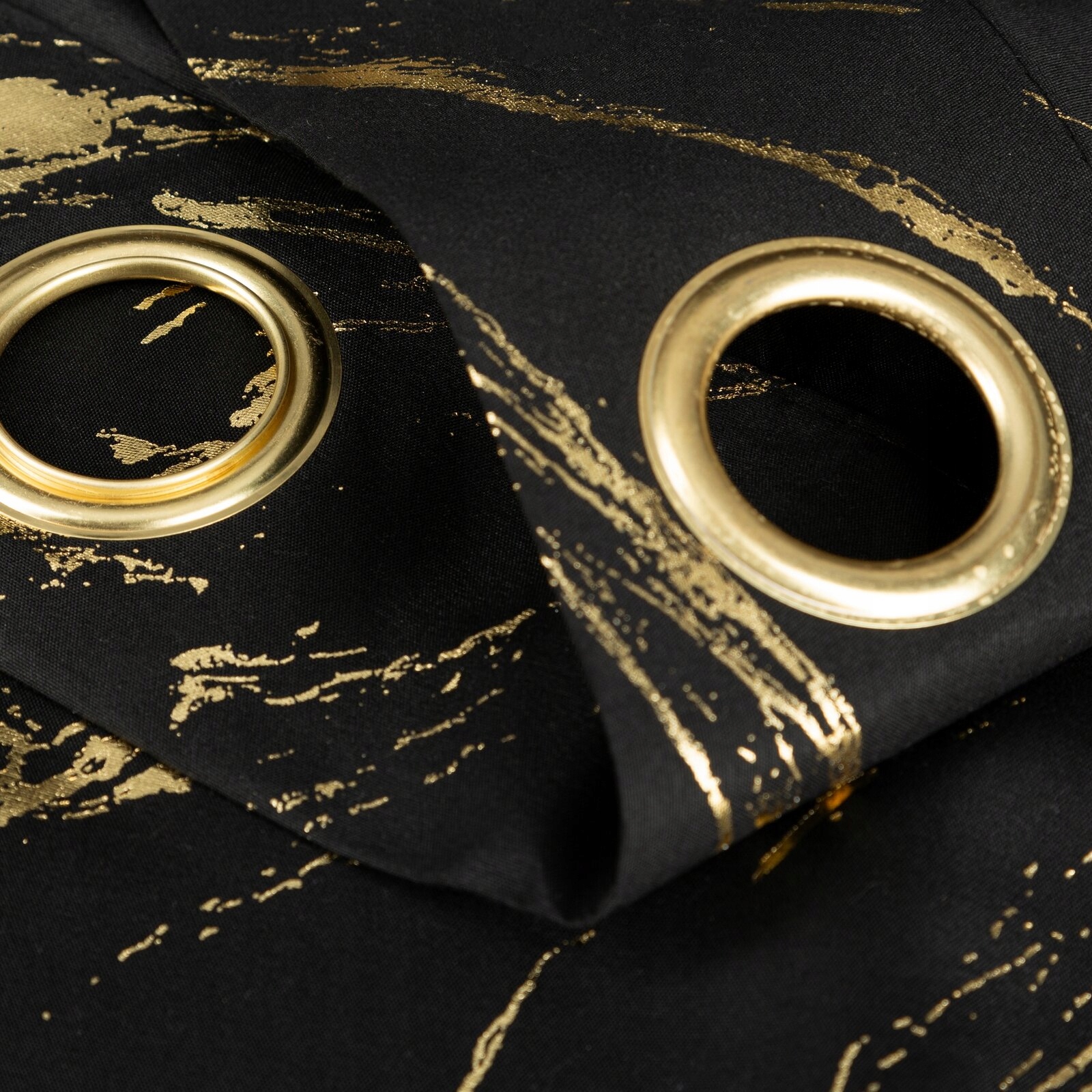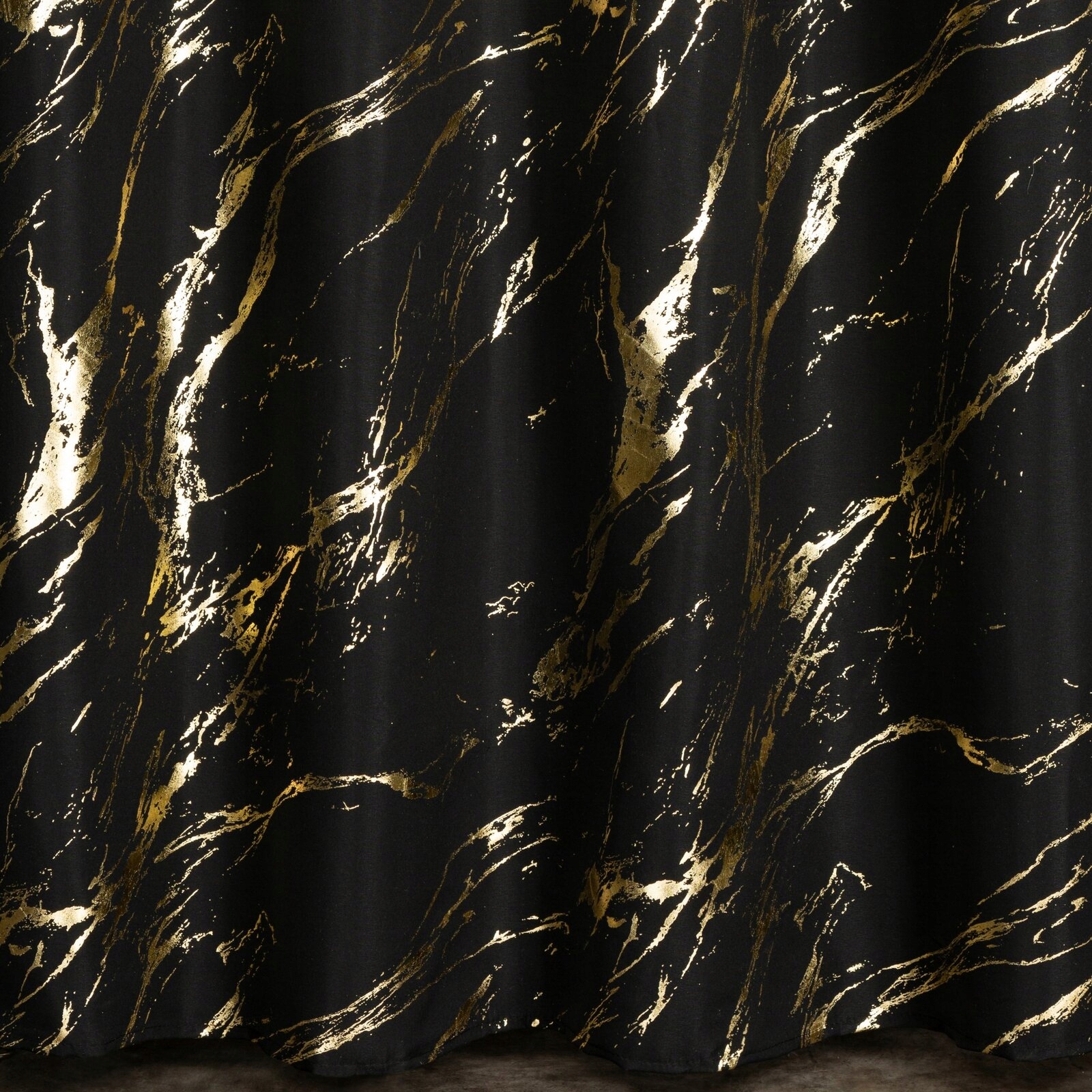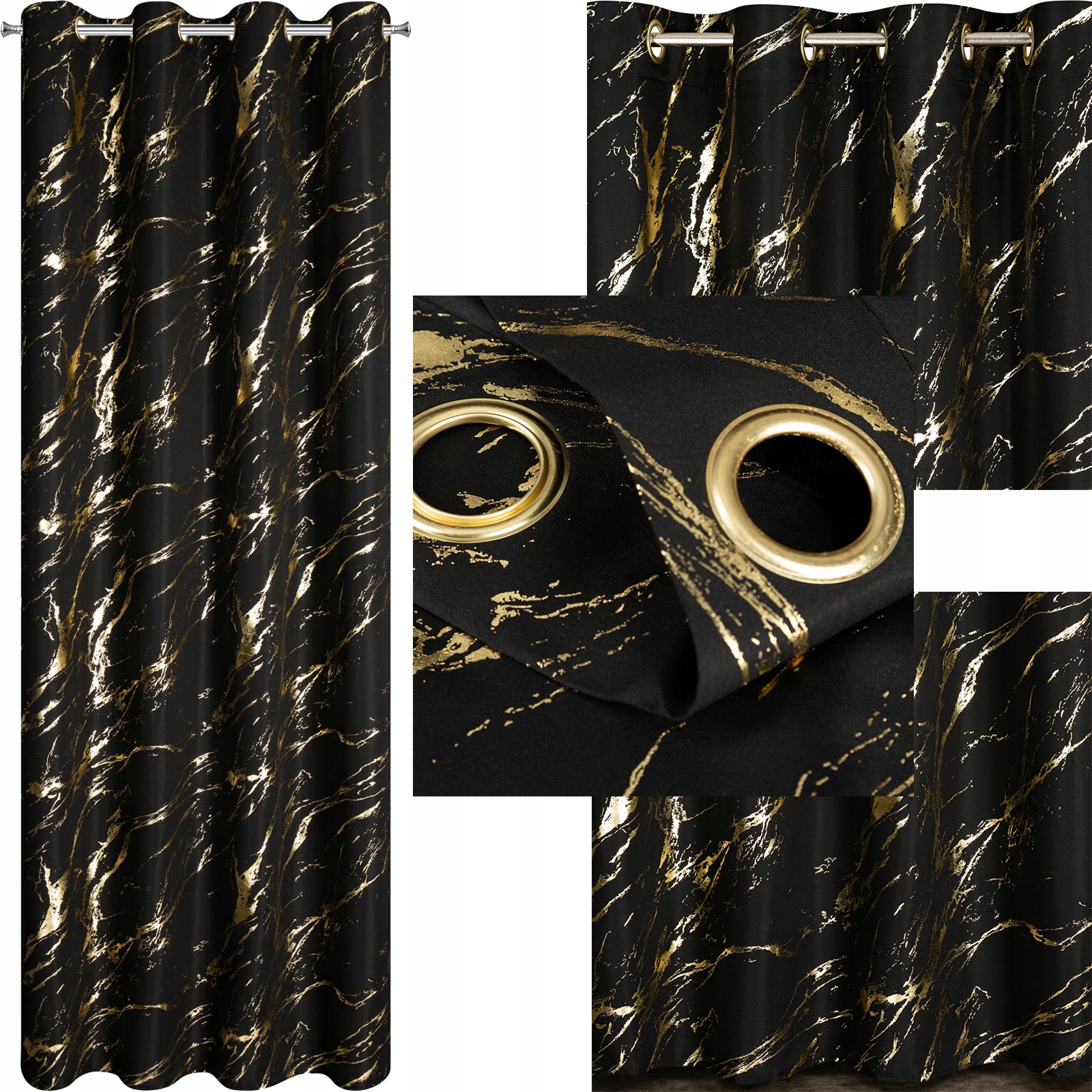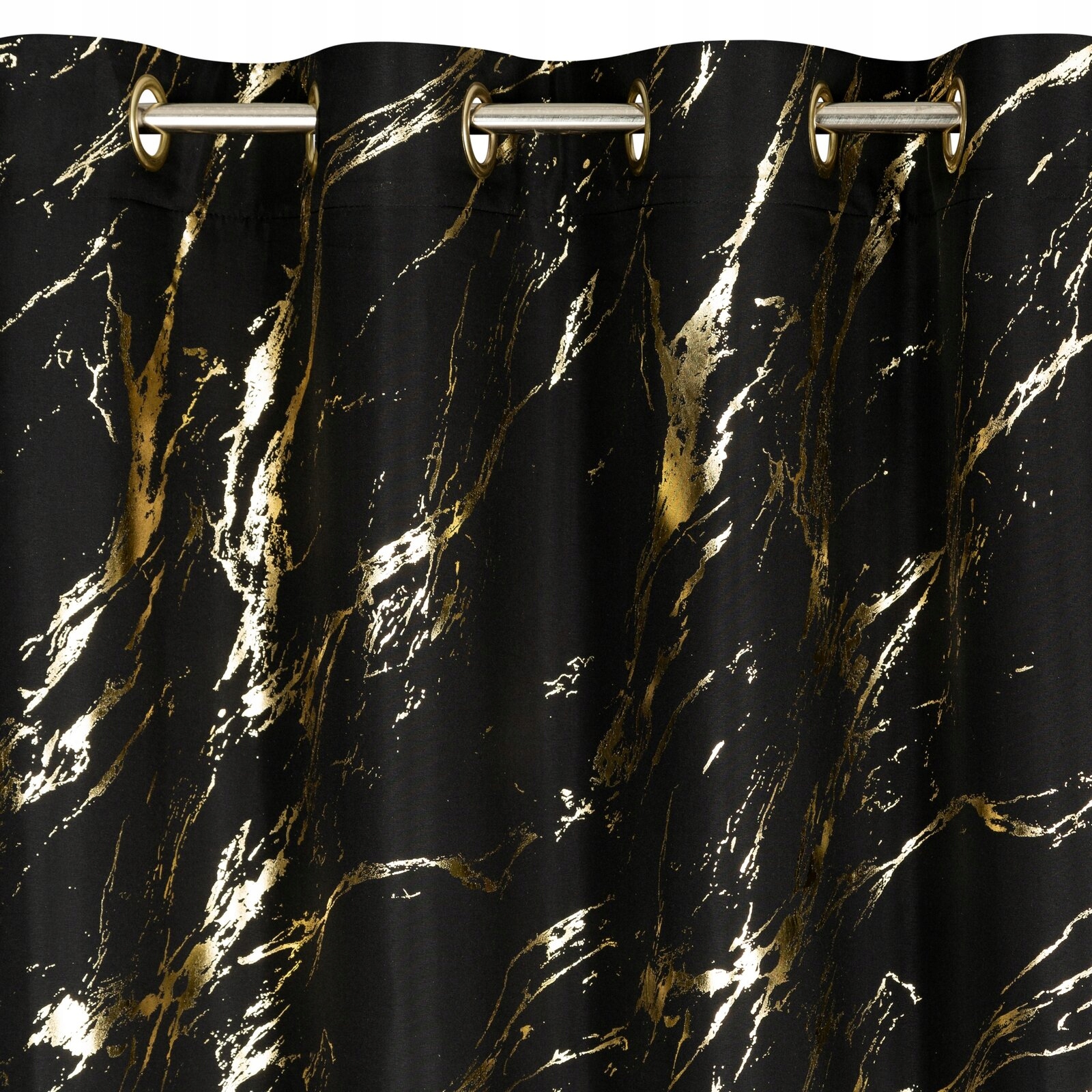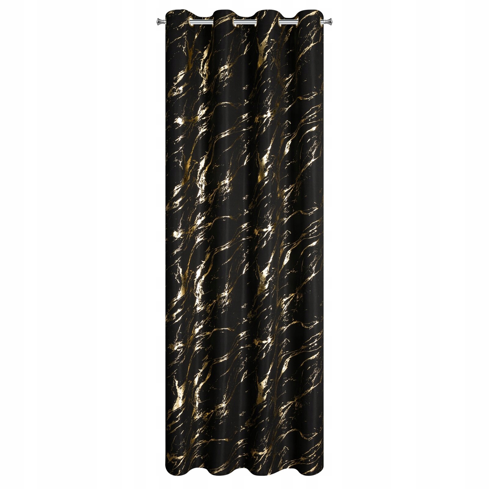 Zasłona 140X250 czarna lekka ze złotym nadrukiem przelotka