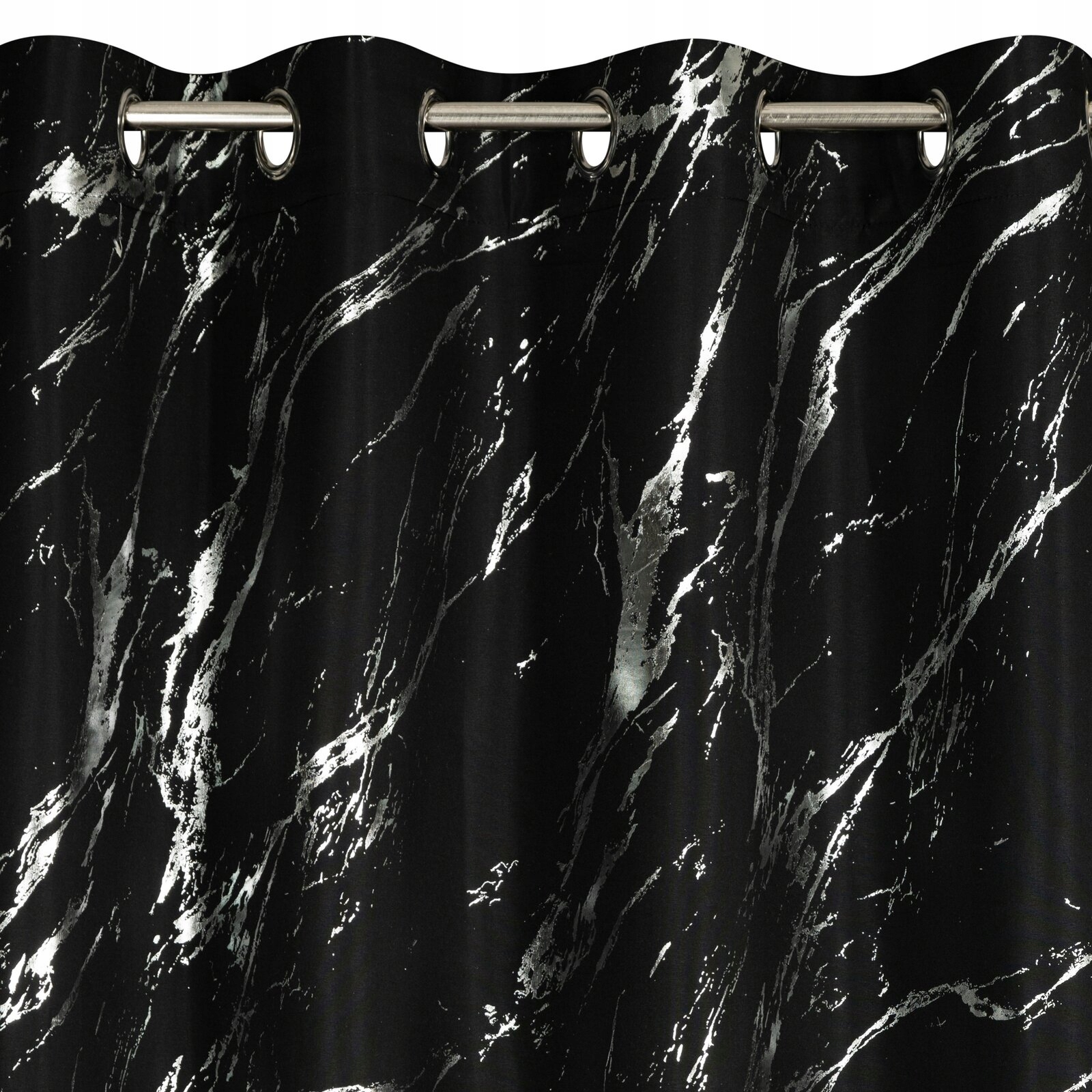 Zasłona 140X250 czarna lekka ze srebrnym nadrukiem
