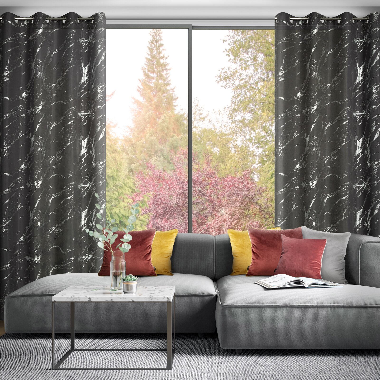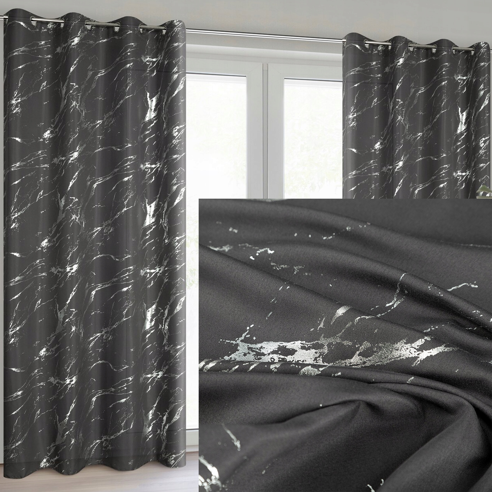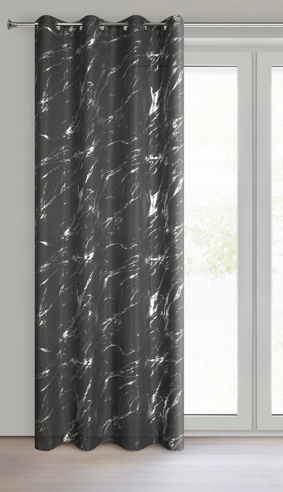 Polecamy zasłonę , którą zdobi nadruk marmurku, naniesiony na kontrastujące tło. Zasłona z lekkiej i delikatnej mikrofibry to dekoracja dedykowana szczególnie nowoczesnym wnętrzom. Zasłonę łatwo zawiesisz na karniszu z drążkiem – służą do tego praktyczne przelotki, dzięki którym zmiana zasłon jest szybka i łatwa, a tkanina układa się po zawieszeniu w miękkie i regularne fale. Delikatna i lekka tkanina subtelnie osłania okno nie powodując zaciemnienia wnętrza, ale tworząc w nim przyjemny klimat.