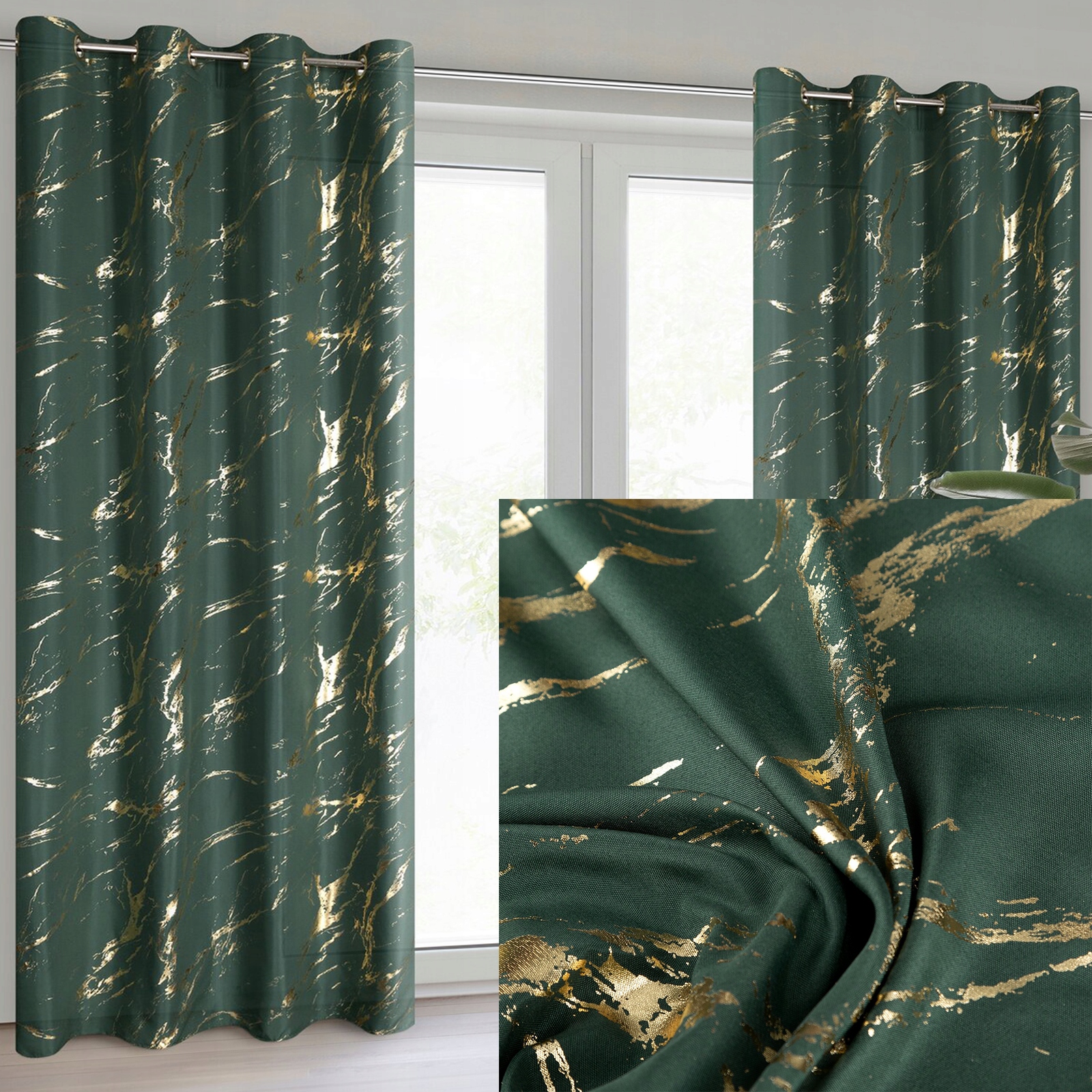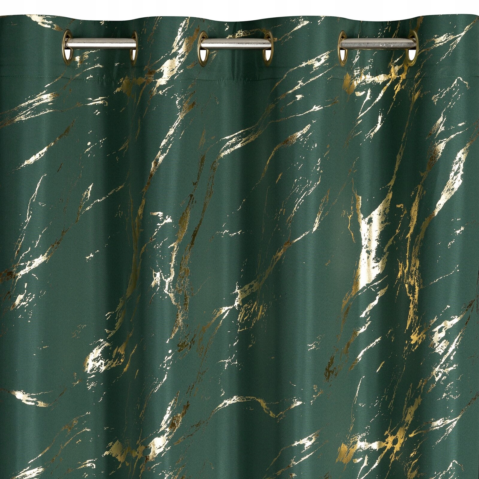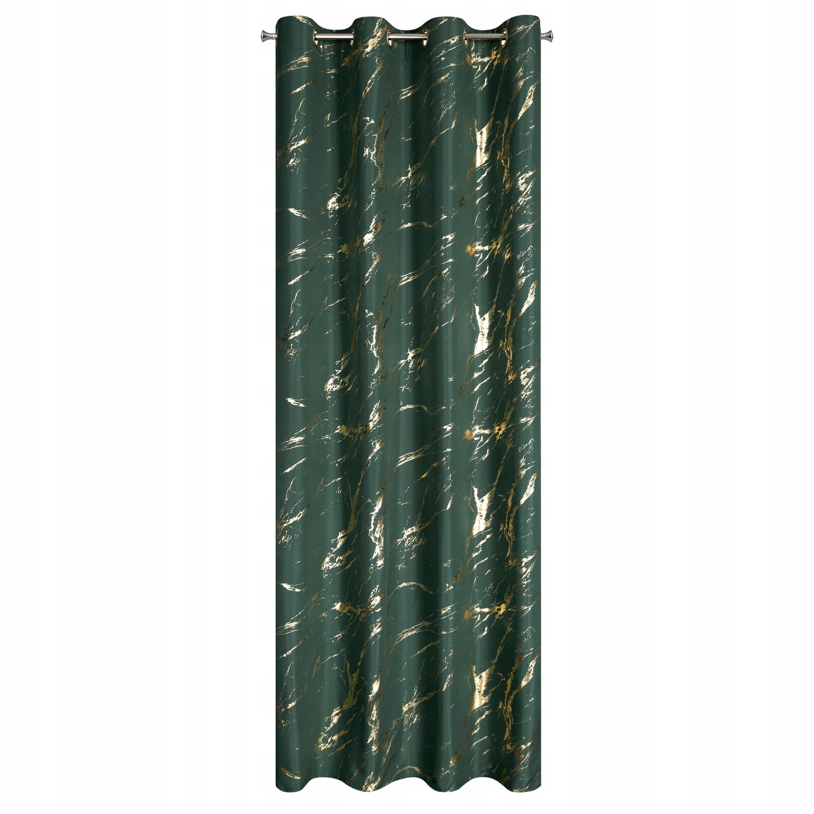 Zasłona 140X250 zielona lekka ze złotym nadrukiem przelotka