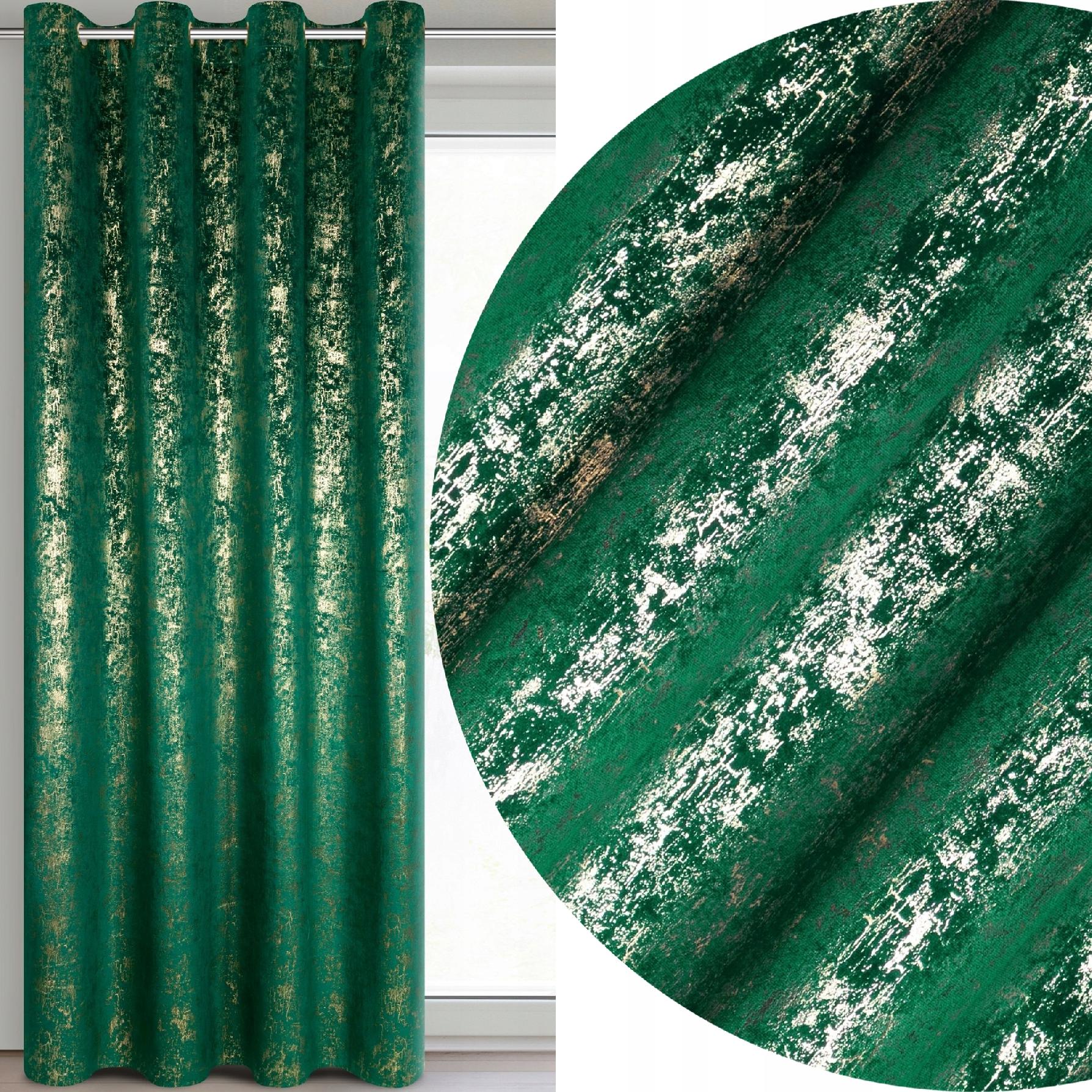 Zasłona 140X250 zielona welwetowa z nadrukiem przelotka