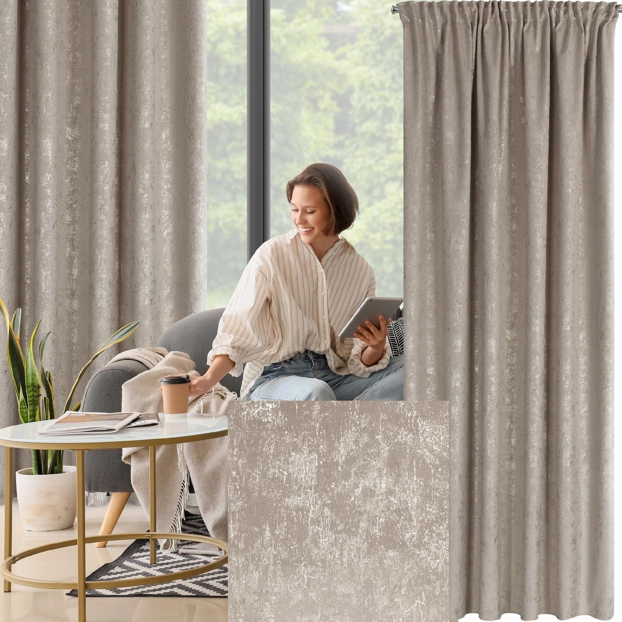 Zasłona z miękkiej welwetowej tkaniny, ozdobiona eleganckim motywem na spokojnym, stonowanym tle, to idealna dekoracja dla nowoczesnych wnętrz w stylu glamour. Aksamitna, przyjemna w dotyku tkanina dodaje wnętrzu luksusowego charakteru, a jej subtelny połysk pięknie komponuje się z naturalnym światłem. Modny wzór wprowadza do pomieszczenia stylowy akcent, tworząc przytulną i modną przestrzeń. Nasze kolekcje są tworzone z pasji do pięknych wnętrz – stwórz z nami idealną oazę spokoju w swoim domu.