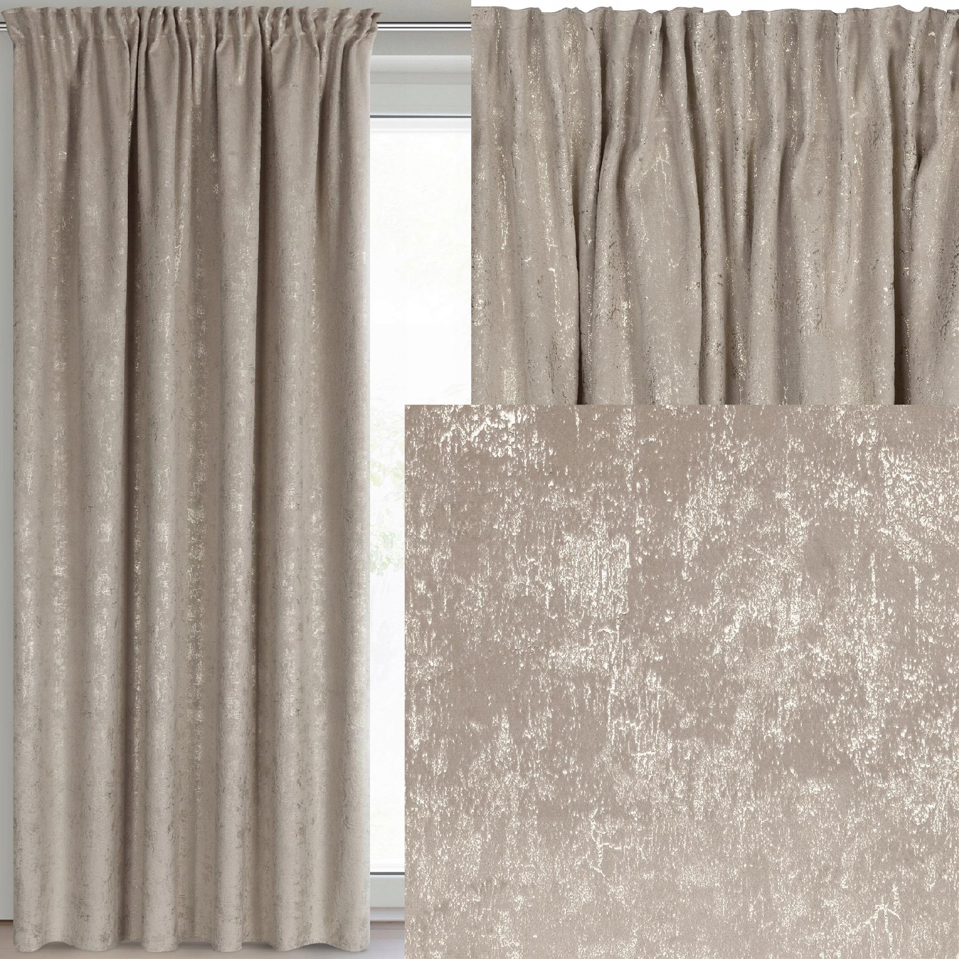 Zasłona 140X270 beżowa welwetowa z nadrukiem taśma