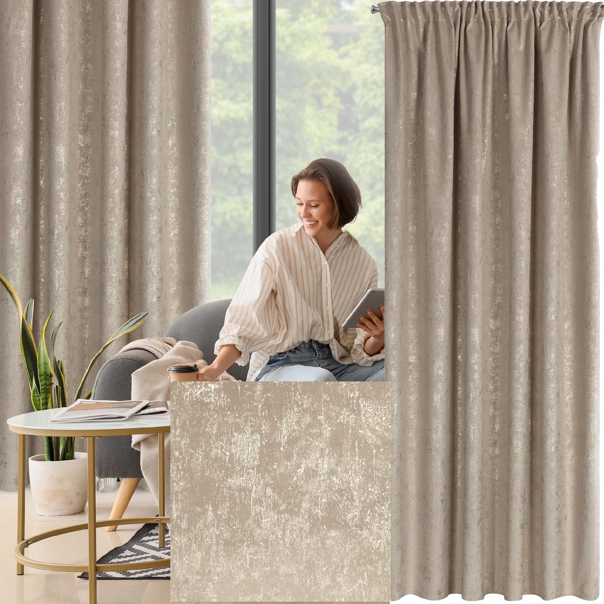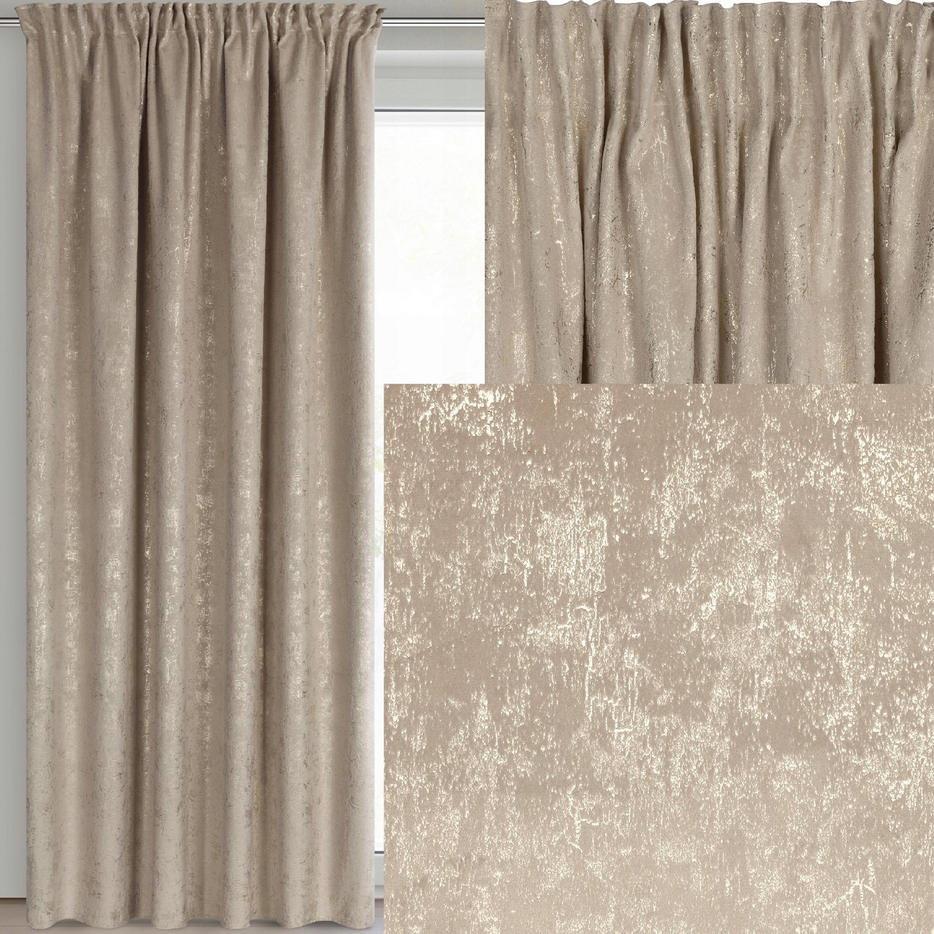 Zasłona 140X270 beżowa welwetowa z nadrukiem taśma