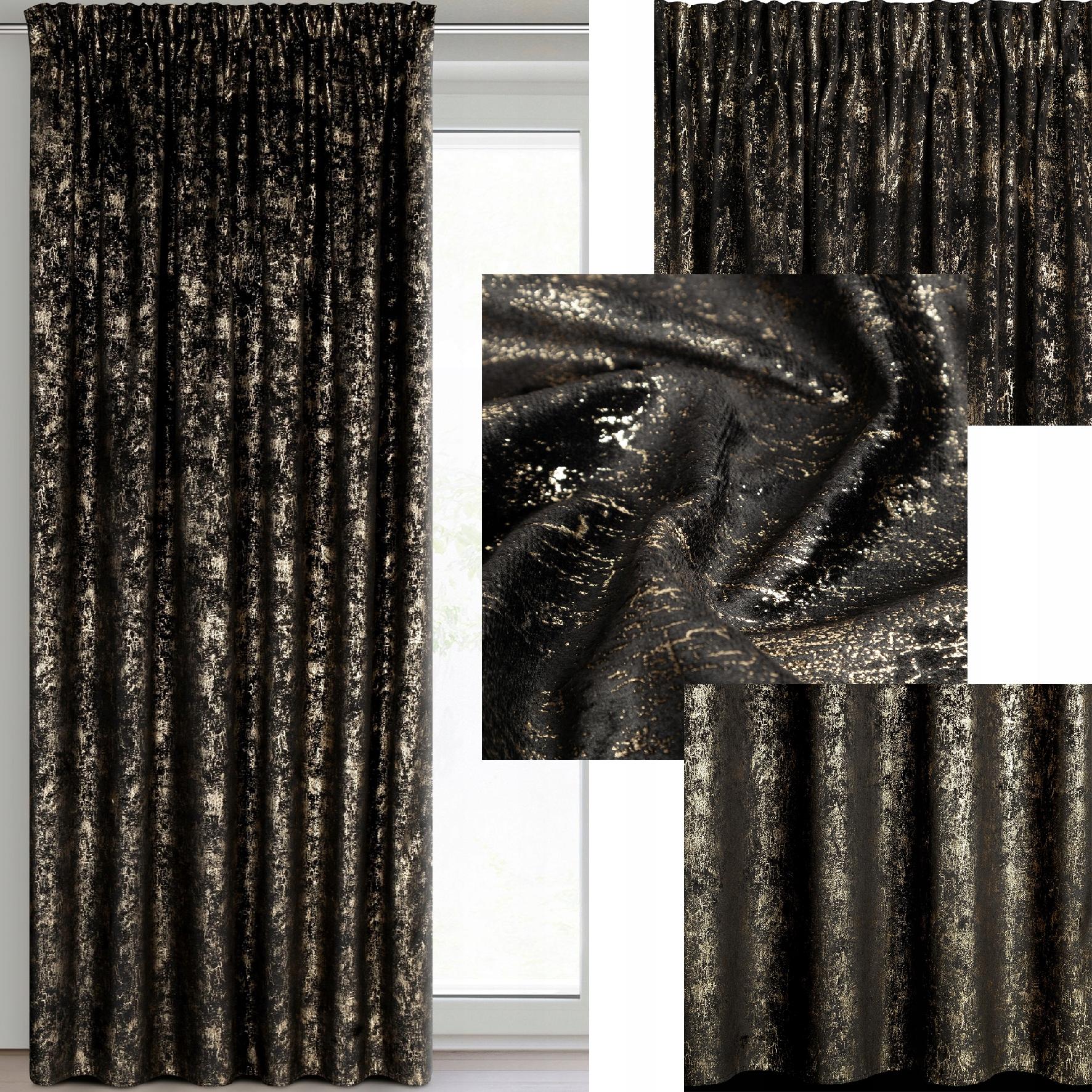 Zasłona 140X270 czarna welwetowa z nadrukiem taśma