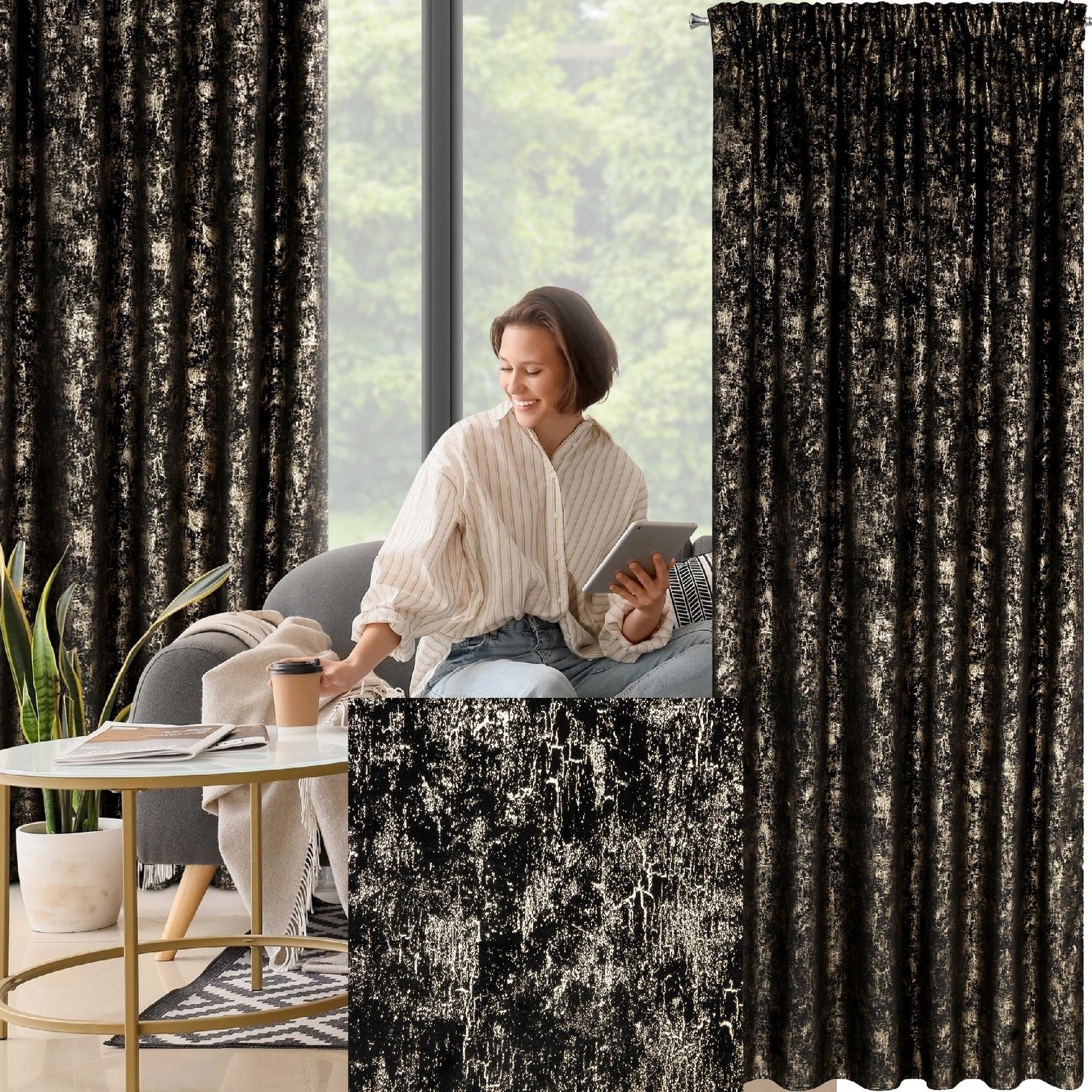 Zasłona 140X270 czarna welwetowa z nadrukiem taśma