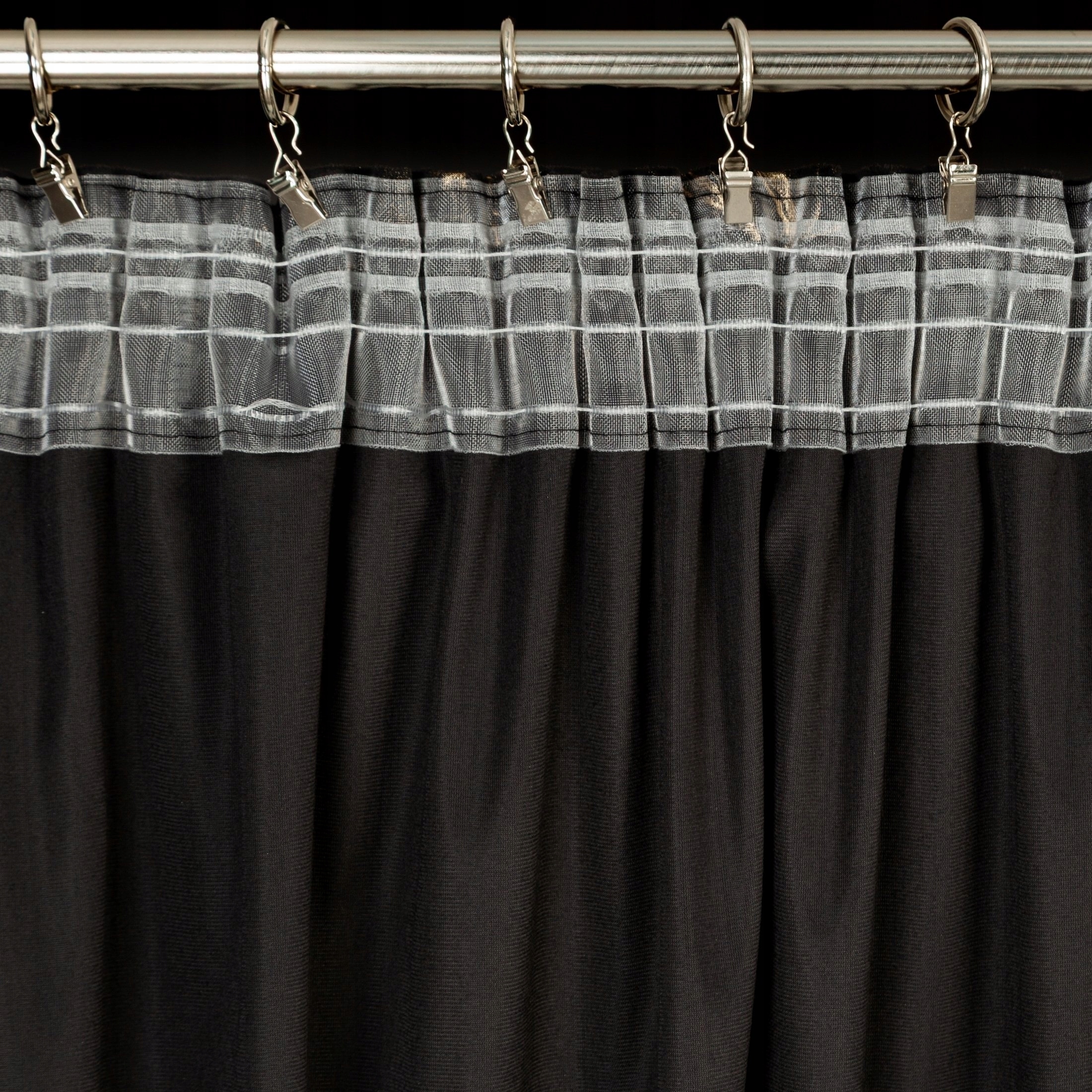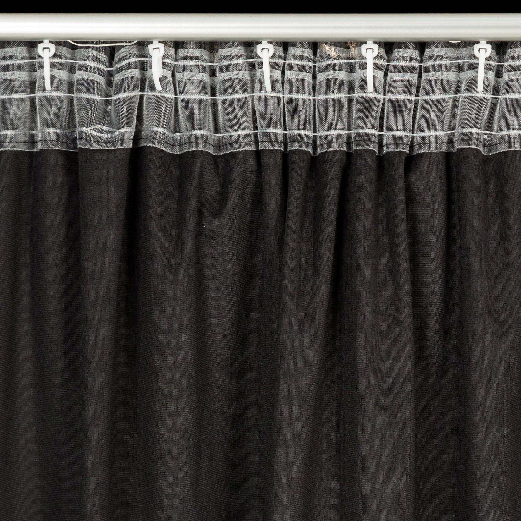 Zastosowanie uniwersalnej taśmy marszczącej z opcją tunelu sprawia, że zasłonę możesz zawiesić zarówno za pomocą haczyków czy żabek, jak i, naciągając ją na karnisz drążkowy.