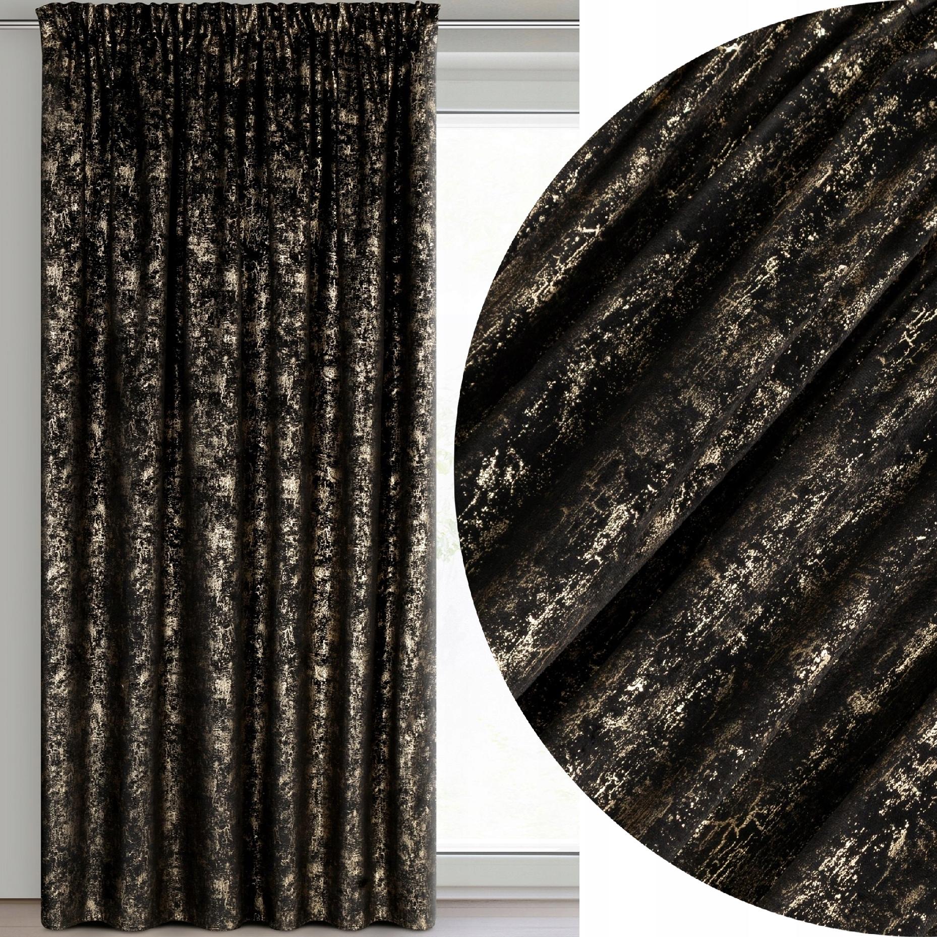 Zasłona 140X270 czarna welwetowa z nadrukiem taśma