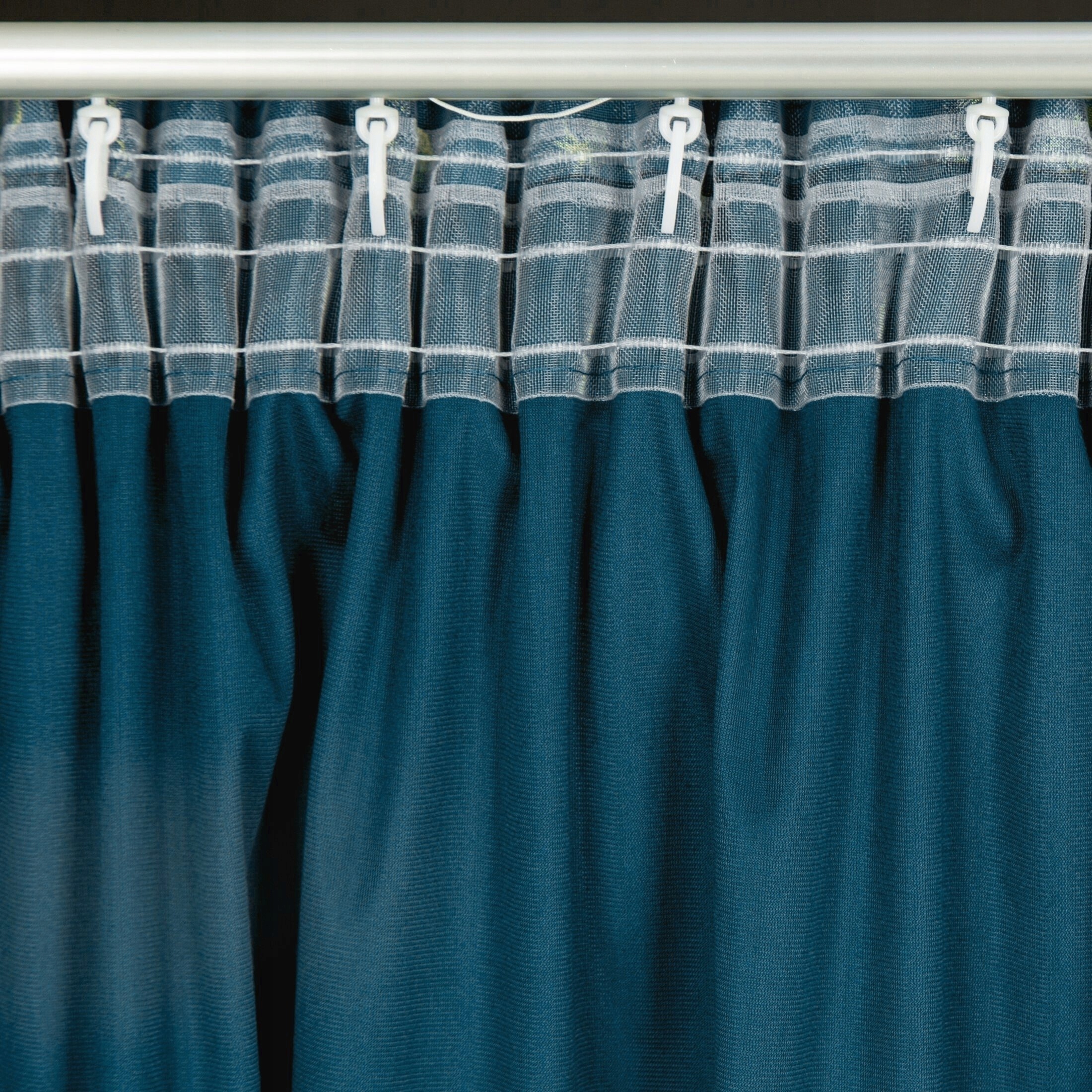 Zastosowanie uniwersalnej taśmy marszczącej z opcją tunelu sprawia, że zasłonę możesz zawiesić zarówno za pomocą haczyków czy żabek, jak i, naciągając ją na karnisz drążkowy.