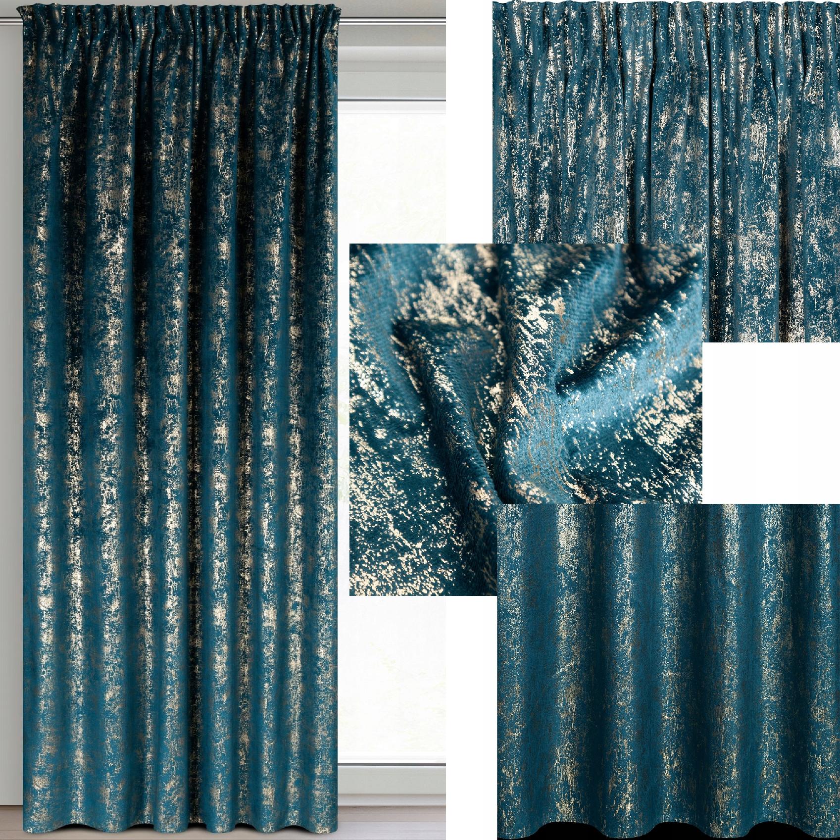 Zasłona 140X270 granatowa welwetowa z nadrukiem taśma