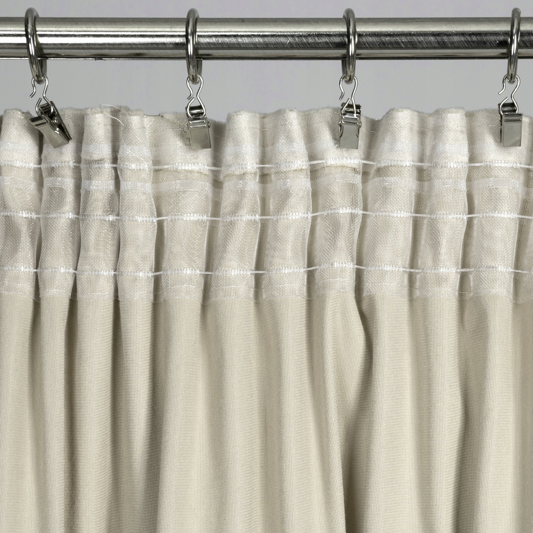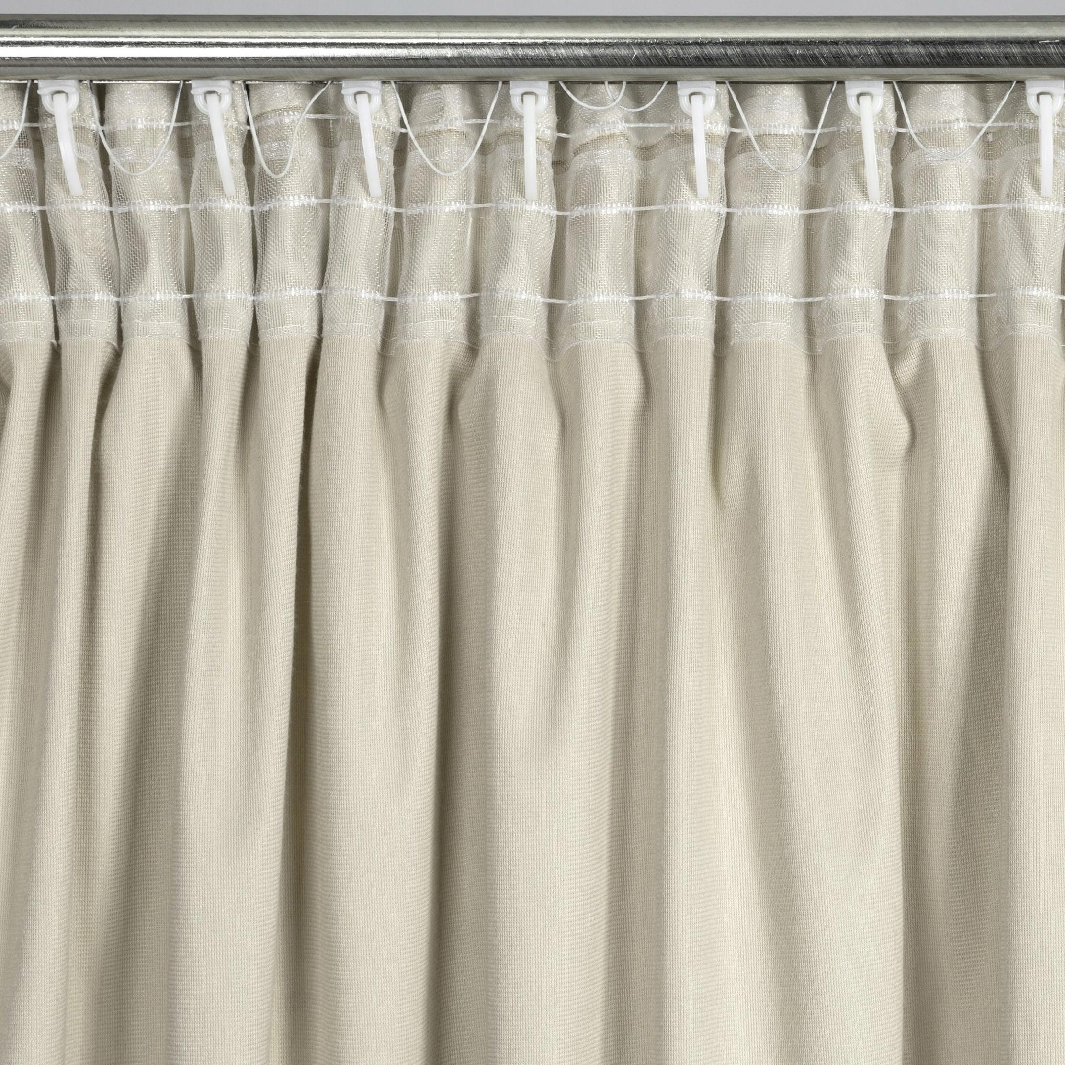 Zastosowanie uniwersalnej taśmy marszczącej z opcją tunelu sprawia, że zasłonę możesz zawiesić zarówno za pomocą haczyków czy żabek, jak i, naciągając ją na karnisz drążkowy.