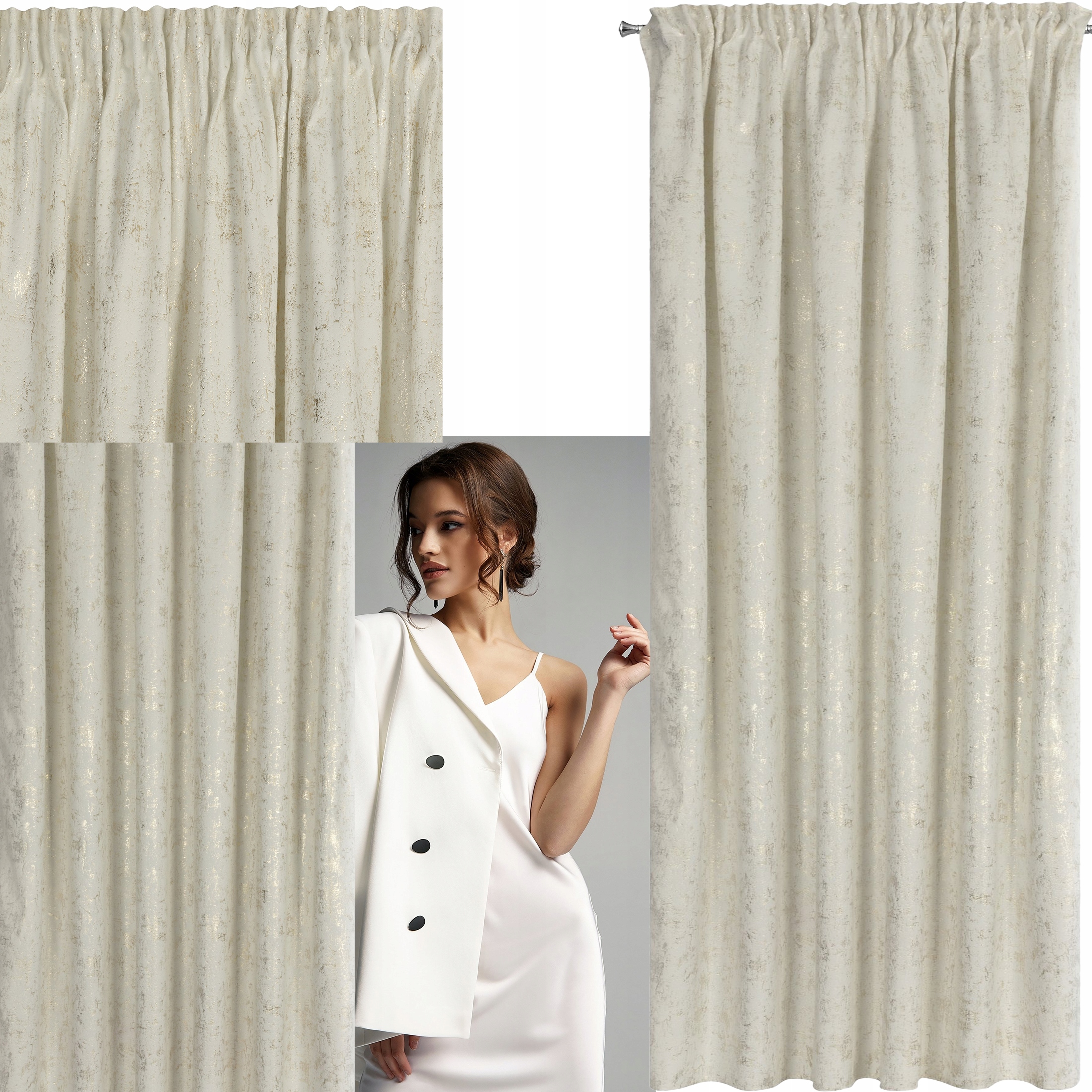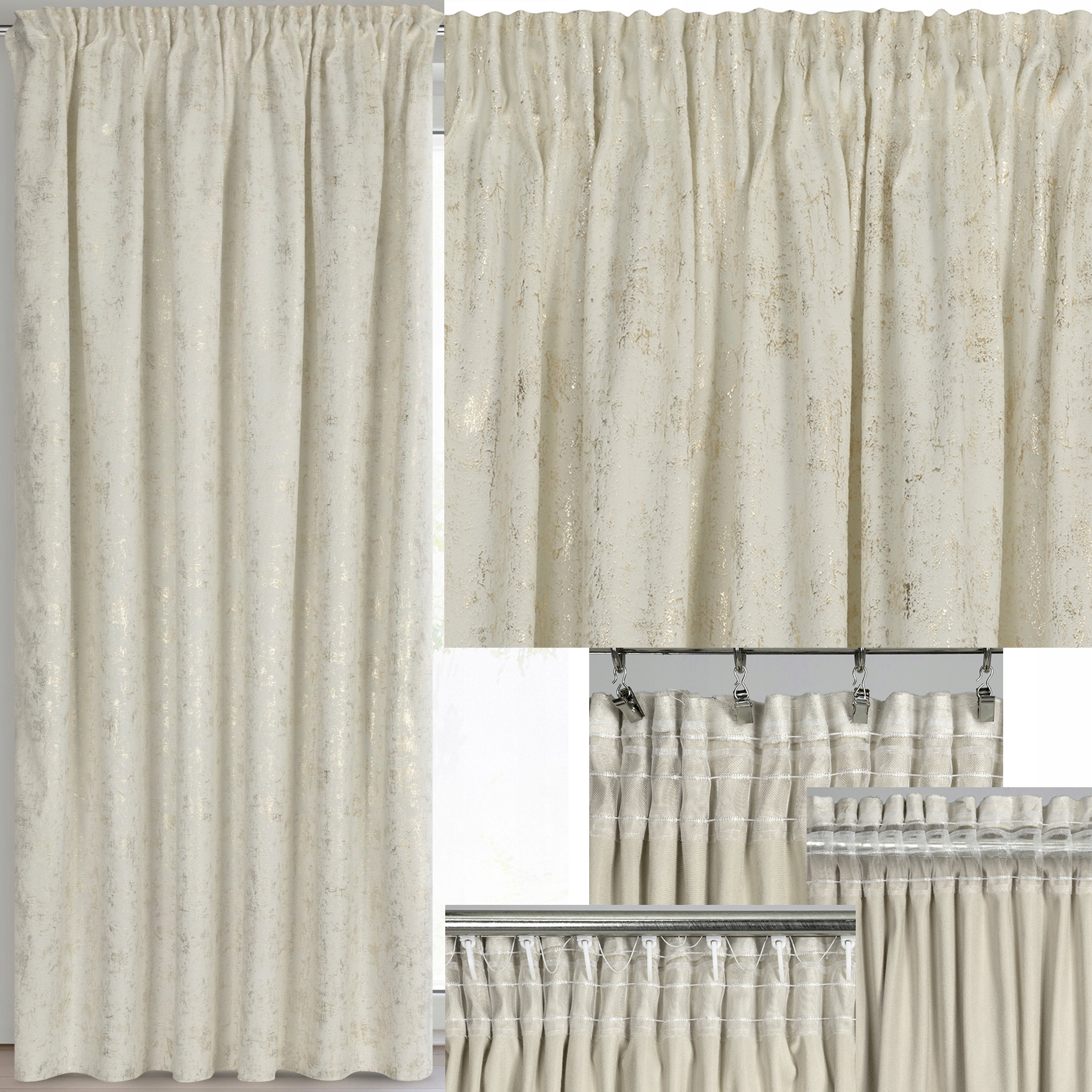 Zasłona 140X270 kremowa welwetowa z nadrukiem taśma