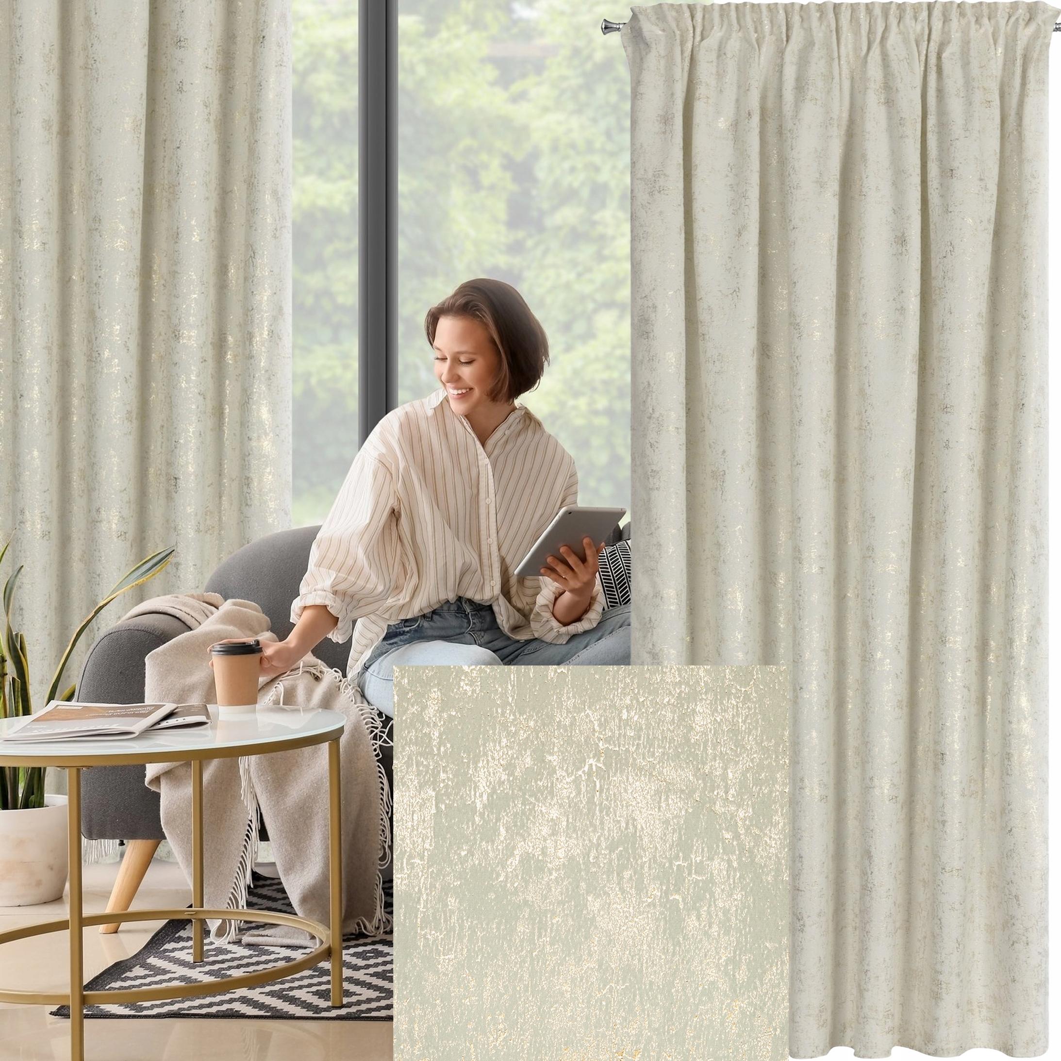 Zasłona 140X270 kremowa welwetowa z nadrukiem taśma
