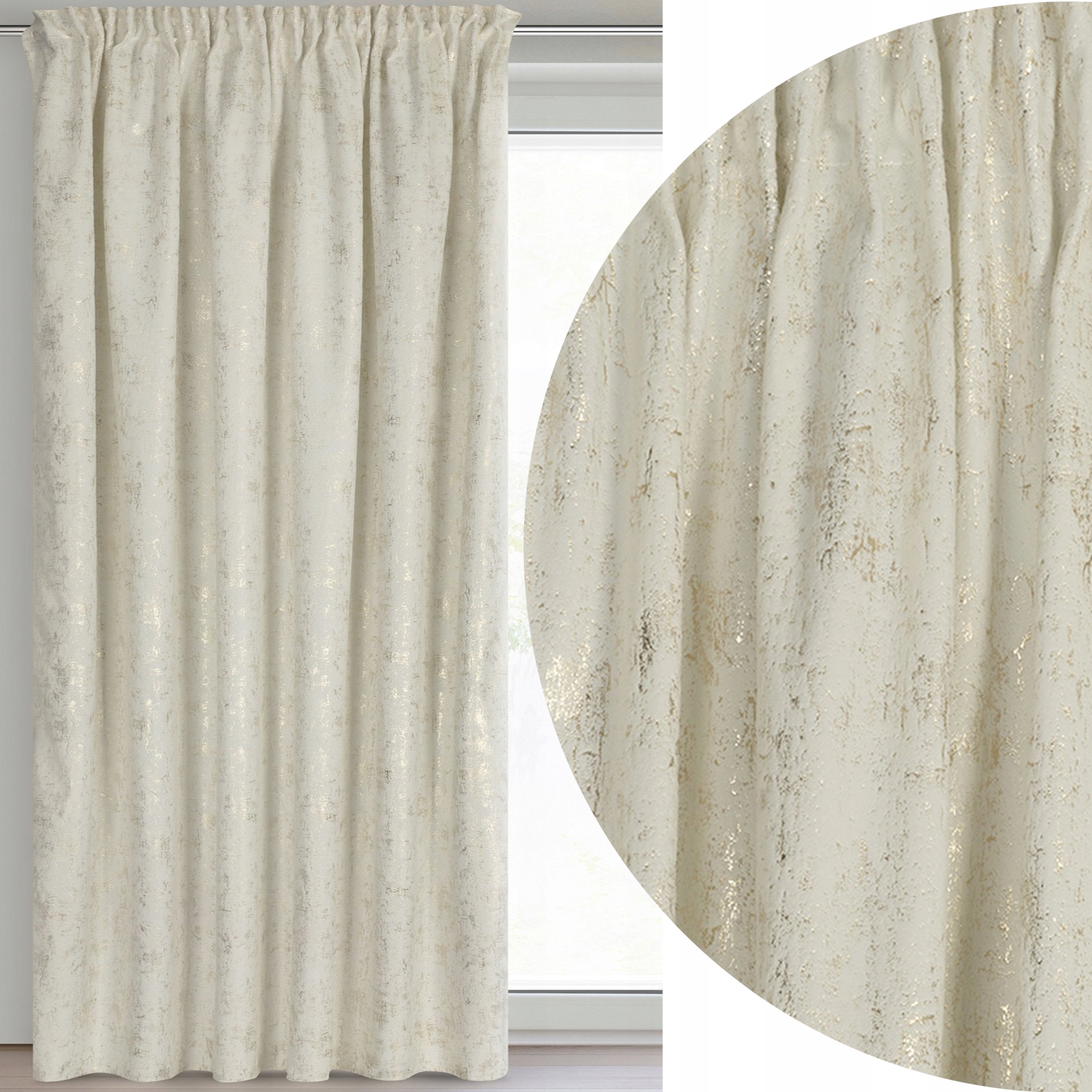 Zasłona 140X270 kremowa welwetowa z nadrukiem taśma
