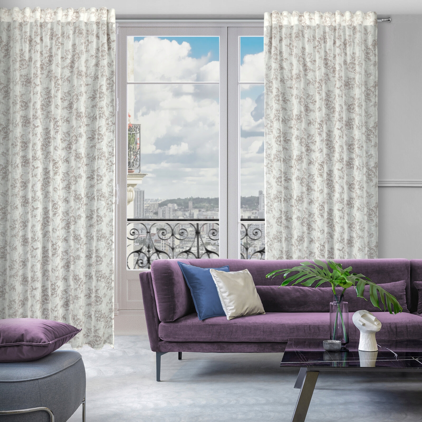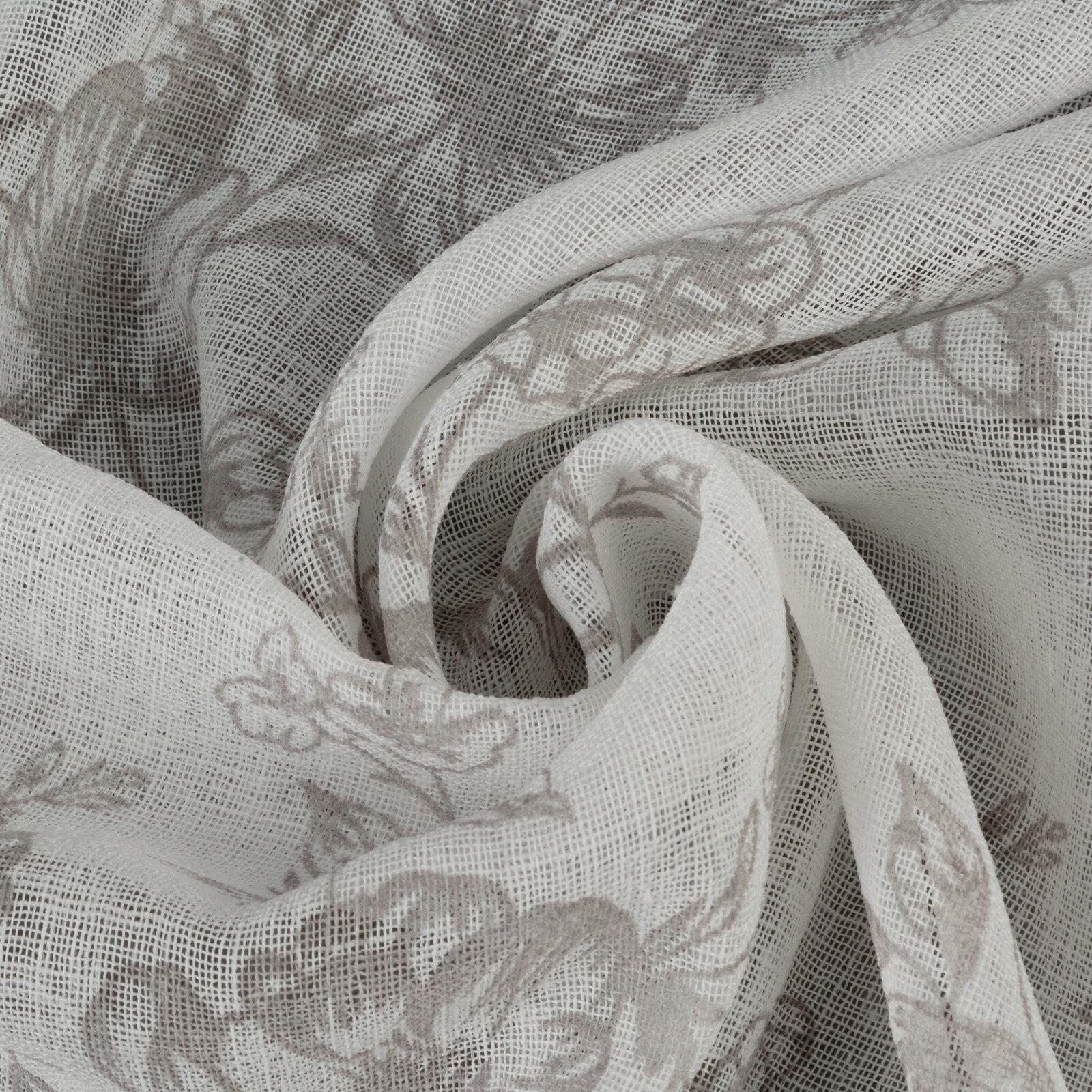 Zasłona biała lekka półzaciemniająca w kwiaty 140×270 popiel